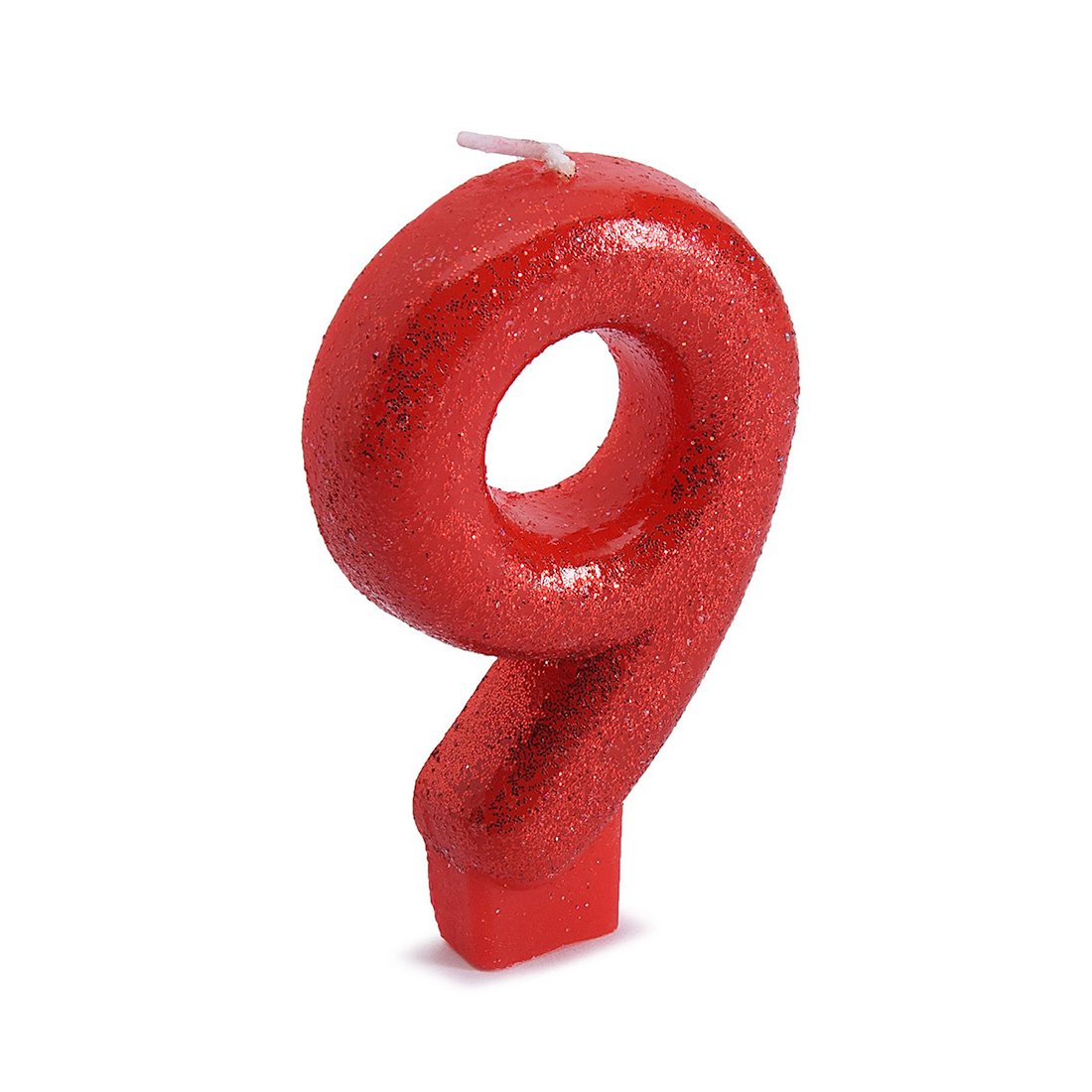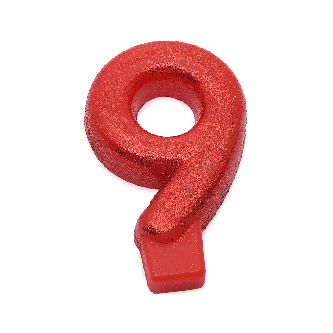 Декоративное украшение стола. Блестящая Свеча в форме цифры "9". Отличное решение для декорирования торта, десерта ко дню рождения или юбилею. Стеарин, оригинальный дизайн. Высота свечи-цифры 7,6см.