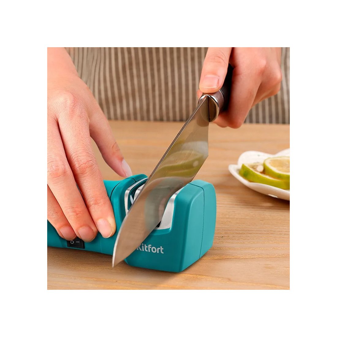 Электроточилка Kitfort KT-6389 подходит для заточки кухонных, спортивных, складных, карманных и других бытовых ножей с гладкими стальными лезвиями. Чтобы ножи служили дольше, заточку точилкой для ножей рекомендуется производить раз в неделю.