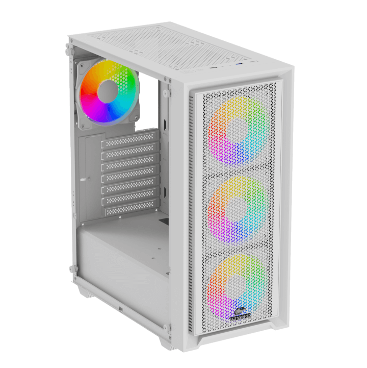 Корпус Wintek Apollo 802-W-M TG, ATX/Micro ATX, USB 1*3.0/2*2.0, HD+Mic, 4*12cm ARGB (контроллер + пульт д/у в комплекте), белый