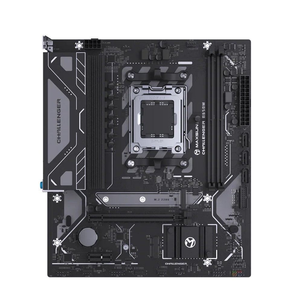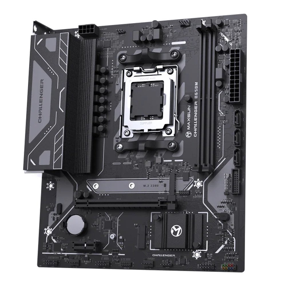 Материнская плата MaxSun Challenger B650M V2 — функциональная micro‑ATX плата на базе чипсета AMD B650 для процессоров с сокетом AM5, с поддержкой 2 × DDR5, PCIe4.0, видеовыходами HDMI и VGA, 4 SATA портами и 1 M.2 слотом — оптимальное решение для современных домашних, офисных и мультимедийных ПК на платформе AMD.