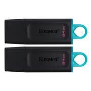 Флэш-накопитель Kingston DataTraveler Exodia 64 GB (комплект 2 шт.) — пара портативных USB-накопителей с интерфейсом USB 3.2 Gen 1, общей ёмкостью 64 ГБ каждый, обеспечивающих быстрый перенос и хранение файлов между ПК, ноутбуками и другими устройствами. Комплект из двух носителей в чёрно-бирюзовом дизайне удобен для разделения личных и рабочих данных или резервного копирования.
