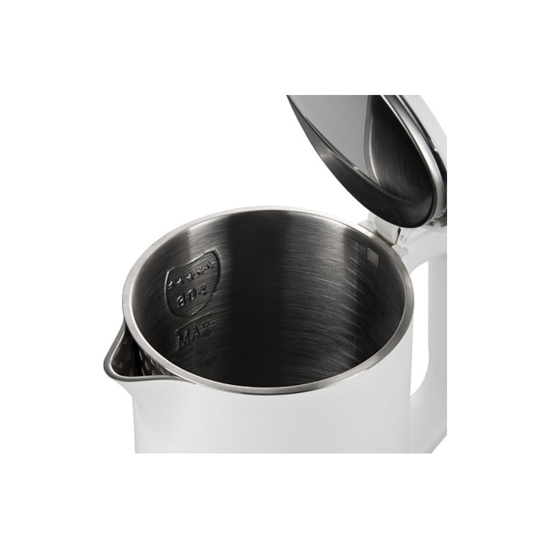 В RK-M1561 предусмотрена воздушная прослойка между внешней стенкой корпуса и внутренней колбой из нержавеющей стали. Такая конструкция создает эффект термоса и позволяет долго сохранять тепло воды. Внешняя стенка чайника не перегревается, поэтому вы не получите ожог, если случайно коснетесь работающего чайника.