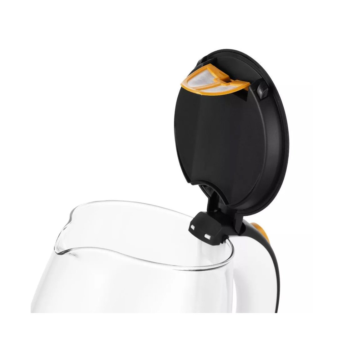 Электрический чайник Kitfort KT-6199 предназначен для быстрого кипячения воды дома, в офисе или на даче. Нагревательный элемент спрятан под металлической пластиной из нержавеющей стали. Это облегчает его очистку и значительно снижает шум при кипячении воды. На внешней стороне чайника расположена мерная шкала, рассчитанная на объем до 2 л. На верхней крышке имеется кнопка открытия. Прибор имеет защиту от перегрева, которая предотвращает включение прибора без воды. В носике чайника имеется съемный фильтр, который улавливает частицы накипи и предотвращает их попадание в чашку.