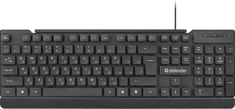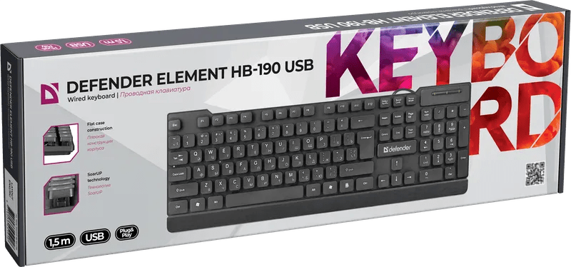 Полноразмерное устройство Defender Element HB-190 островного типа позволяет самостоятельно регулировать угол наклона рабочей области. Подключение к компьютеру осуществляется при помощи кабеля длиной 1.5 м с разъемом USB. Питание клавиатуры осуществляется по шине.