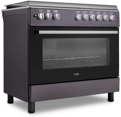 Ширина 90см; газовые конфорки: 4 газовых + 1 двухконтурная (по центру), электроподжиг в ручке, газовая духовка - объем 106 л, газконтроль духовки. Комплектация: Крышка рабочего стола (стекло), Противень – 2 шт.,Решетка духовки-1 шт., Вертел с электроприводом, Термостат,Нижний ящик для посуды. Элементы комфортности:Механический таймер, Подсветка духовки. Габариты ШхГхВ - 900 х 600 х 850 мм. Масса нетто/брутто – 63/70 кг. , цвет -черный.