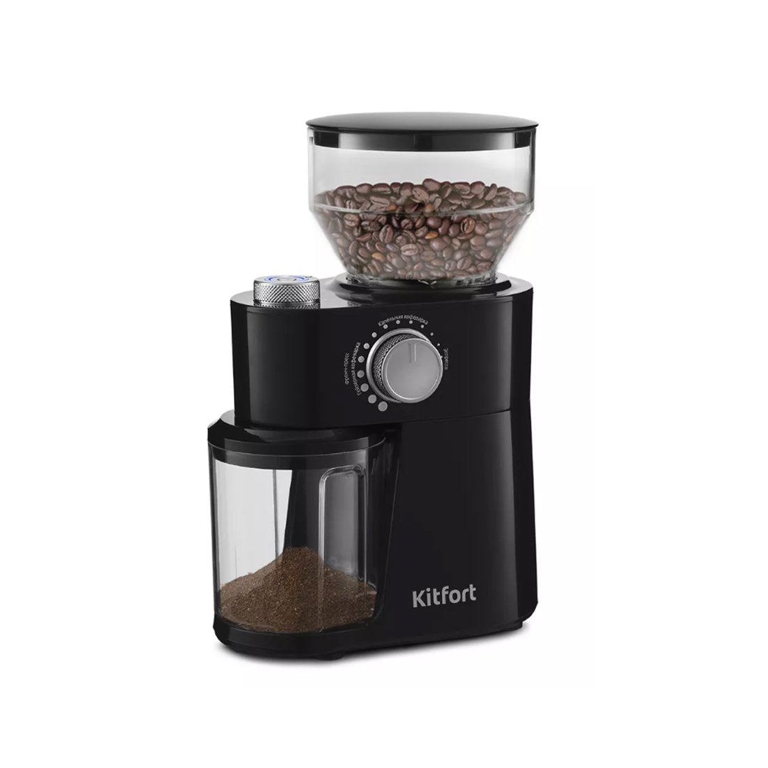Жерновая кофемолка Kitfort КТ-741 предназначена для помола кофейных зёрен. Она оснащена плоскими металлическими жерновами из углеродистой стали. Благодаря чему, при помоле, кофе не перегревается и не меняет свой вкус.