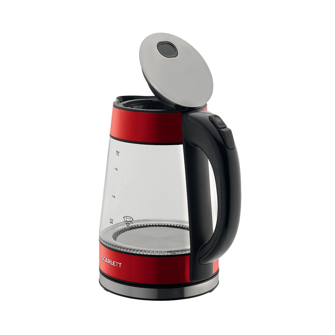 Электрический чайник SC-EK27G79 с увеличенным объемом 1.7 л оснащён автоматической системой открытия крышки. Эргономичная ручка, закрытый нагревательный элемент сделают эксплуатацию прибора еще проще и комфортнее. Нейлоновый фильтр предотвратит попадание накипи в напиток. Safe Work – автоотключение при закипании, защита от включения без воды сделает эксплуатацию прибора наиболее безопасной. Яркая внутренняя подсветка позволит наблюдать за завораживающим процессом кипячения. Стильный красный цвет станет удачным решением на кухне!