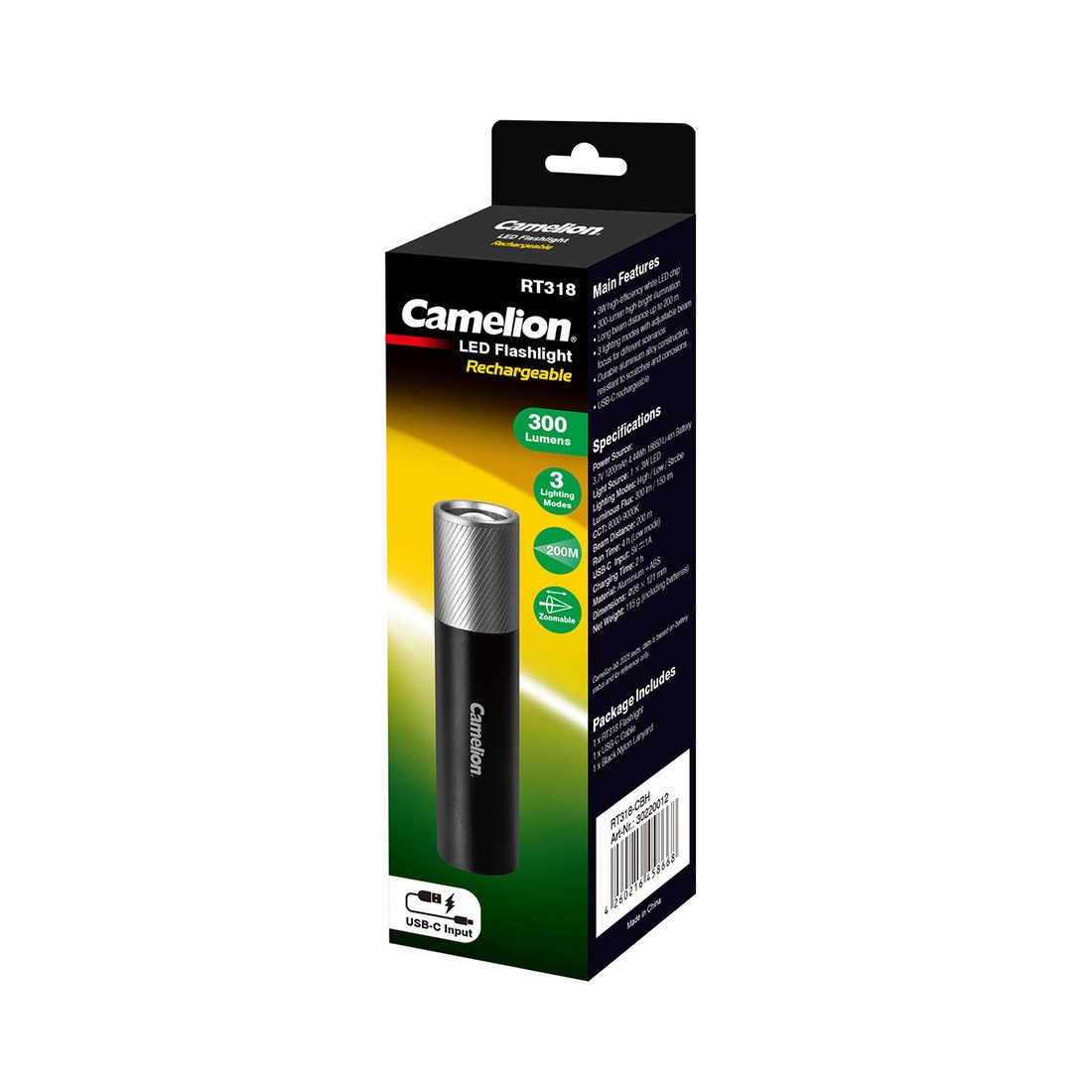 Перезаряжаемый фонарик Camelion RT318-CBH — компактное и мощное осветительное устройство для повседневного использования, активного отдыха, ремонта, путешествий и других задач, где требуется надёжный источник света. Этот фонарик сочетает яркость, универсальность и удобство зарядки через USB-Type-C, что делает его отличным выбором для дома и улицы.