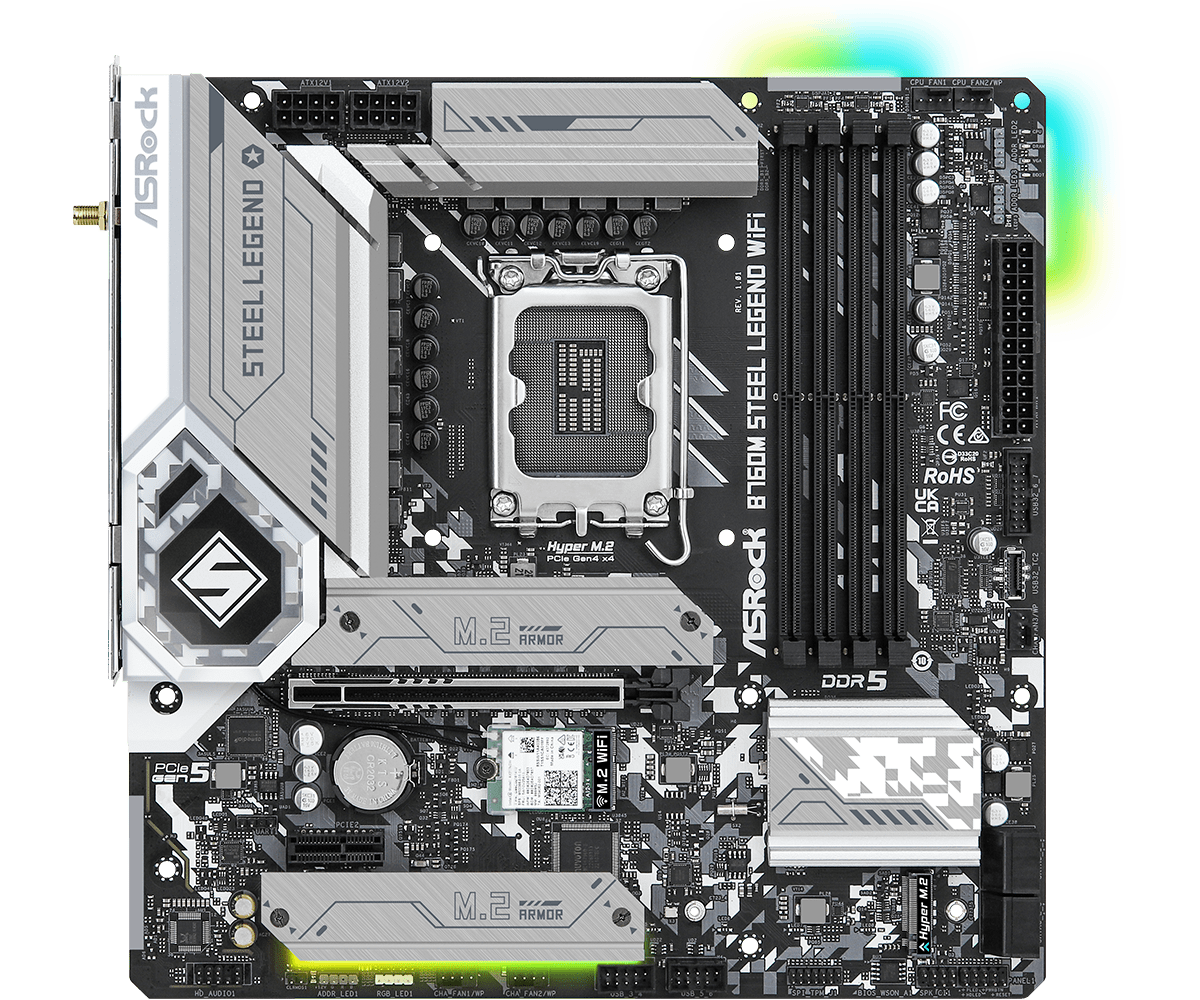 Материнская плата ASRock B760M STEEL LEGEND WIFI LGA1700 4xDDR5 4xSATA RAID 3xM.2 HDMI DP eDP mATX