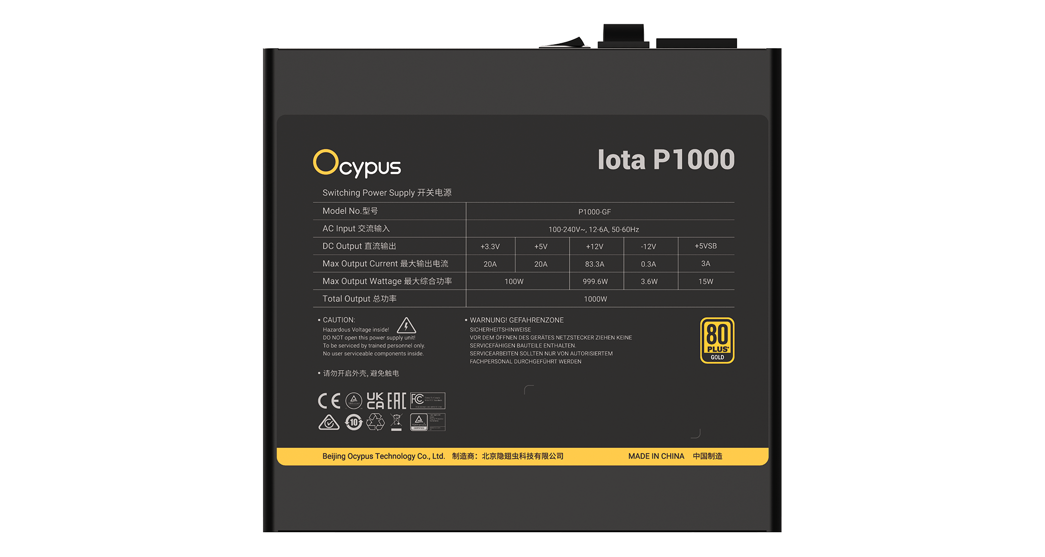 Блок питания Ocypus Iota P1000 Черный 1000W Full Modular, 80+ GOLD, КПД 91% Iota-P1000-G1FFBK024X-EU