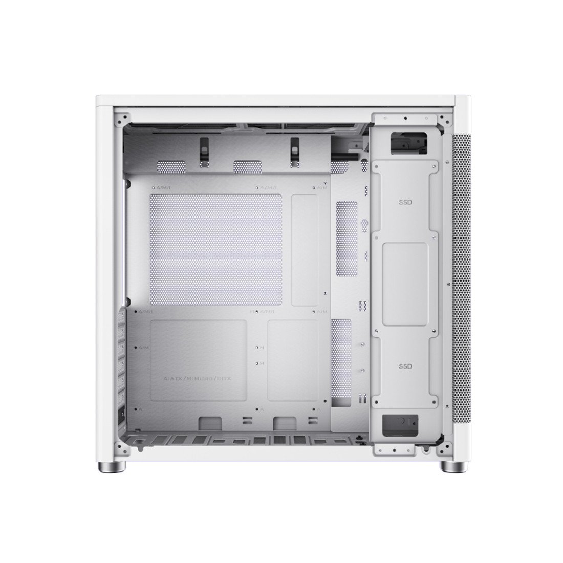 Корпус предлагает просторное внутреннее пространство, позволяющее устанавливать длинные видеокарты, высокие процессорные кулеры и радиаторы систем жидкостного охлаждения, что делает его подходящим решением для производительных конфигураций. Особенность модели — многочисленные элементы с сетчатой (mesh) передней панелью, обеспечивающие улучшенный приток воздуха и эффективное охлаждение компонентов даже при интенсивной нагрузке.