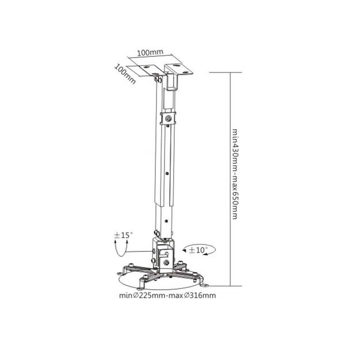 Кронштейн потолочный PRB-2 позволяет менять угол наклона вниз и вверхна +/- 15 градусов. Допустимая максимальная нагрузка 20 кг. Кронштейн изготовлен из высококачественного металла и имеет самый распространённый размер монтажных отверстий. Крепление адаптировано для простого и быстрого монтажа. В комплекте инструкция на казахском и русском языках.