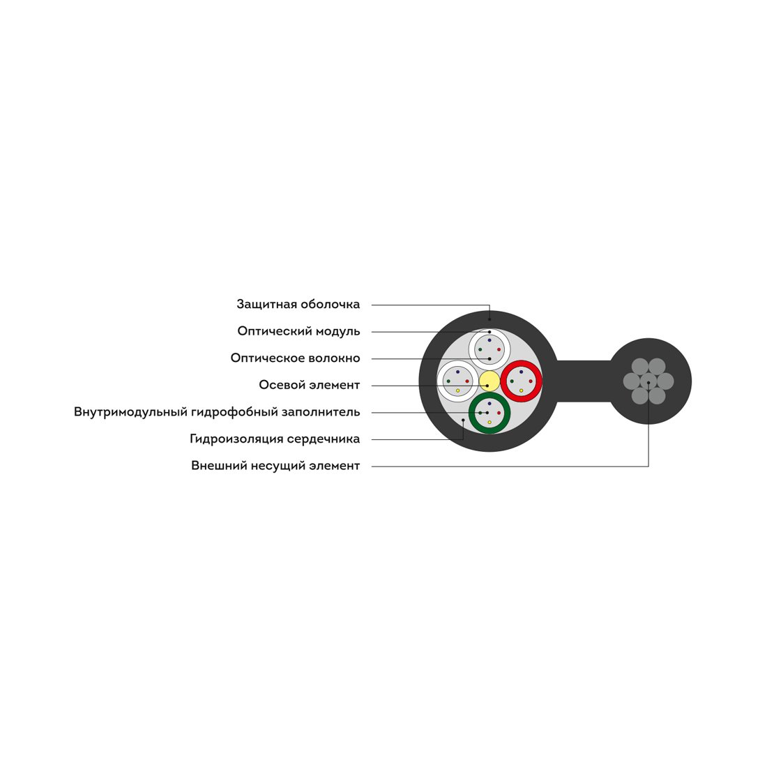 Подвесной оптический кабель имеет форму восьмерки. В верхней части конструкции располагается стальной трос, пруток из стеклопластика или проволока, а в нижней – оптический элемент. Обе части покрыты высокоплотным полиэтиленом и соединены друг с другом в единое целое. Оптические кабели, которые находятся под открытым небом, подвергаются воздействию перепадов температуры, ультрафиолета, дождя, снега и прочее. Эти факторы могут привести к их повреждению. Описание конструкции: