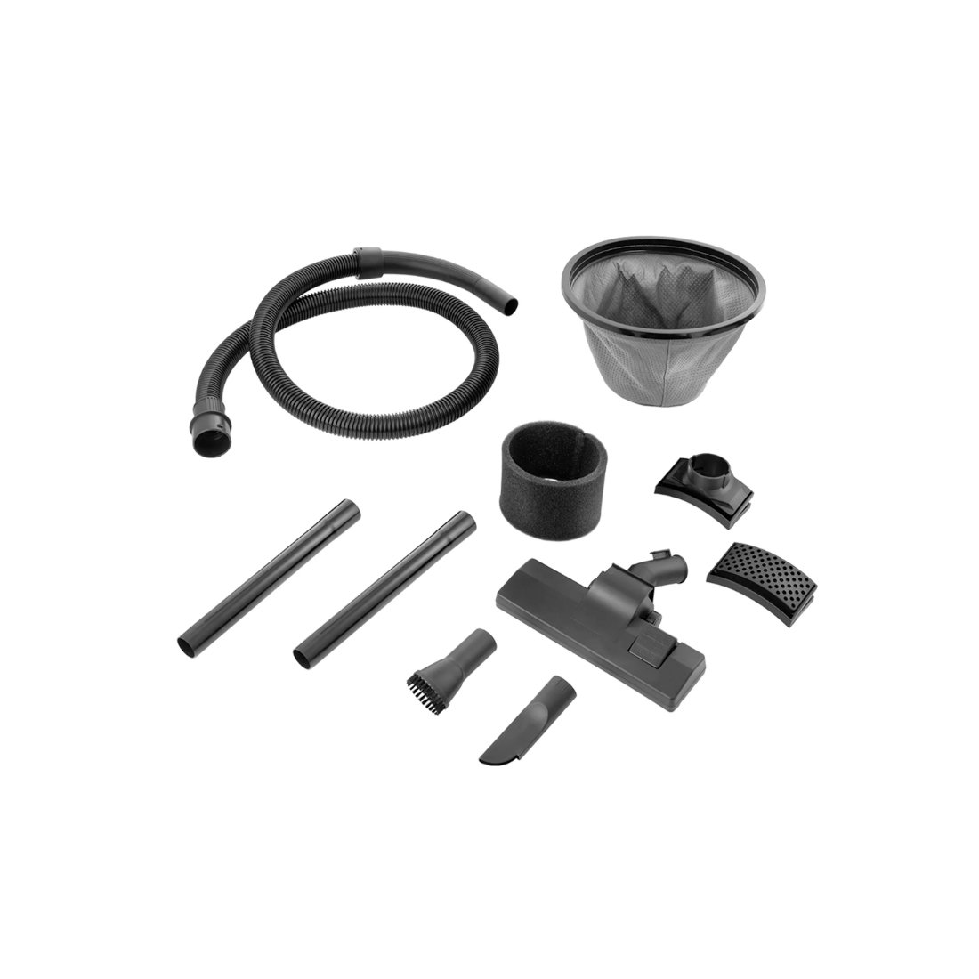 В комплекте идут все стандартные аксессуары: гибкий шланг, удлинительные трубки, щетка для пола с переключателем пол/ковер, насадки.