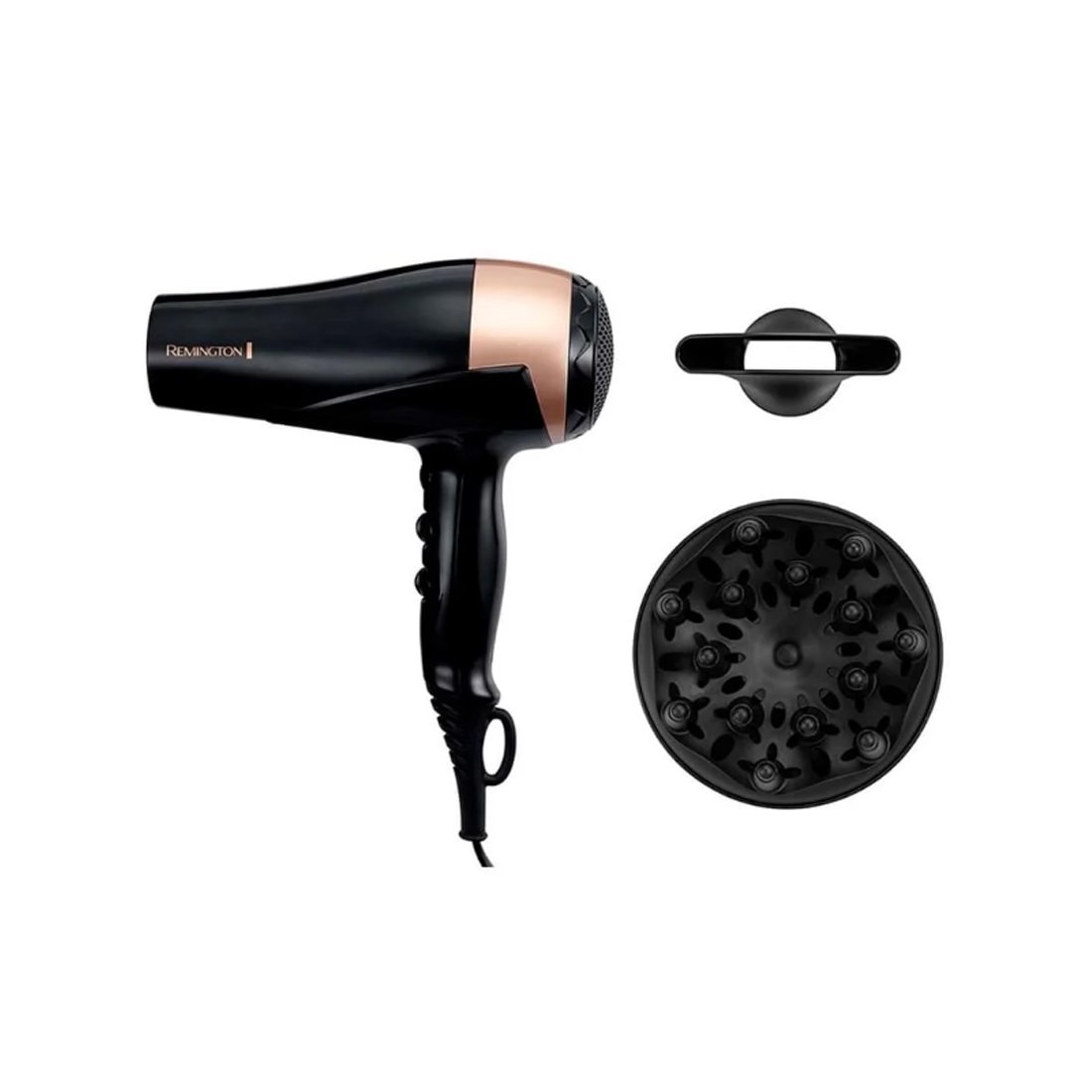 Фен Remington D5715 гарантирует мощность 2300 Вт с фактической мощностью мотора 2100 Вт и скорость воздушного потока 85 км/ч. Сохраняет при этом электроэнергию и имеет меньшее тепловое воздействие на волосы для их бережного стайлинга. Модель обладает керамической решеткой (для равномерного распределения тепла по волосам).