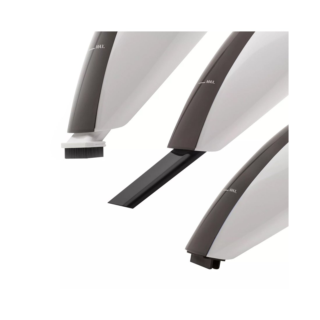 3 насадки в комплекте. Узкая насадка - для уборки труднодоступных мест. Силиконовая насадка - для всасывания жидкостей с поверхности. Ворсовая насадка - для уборки кресел и ковриков автомобиля.