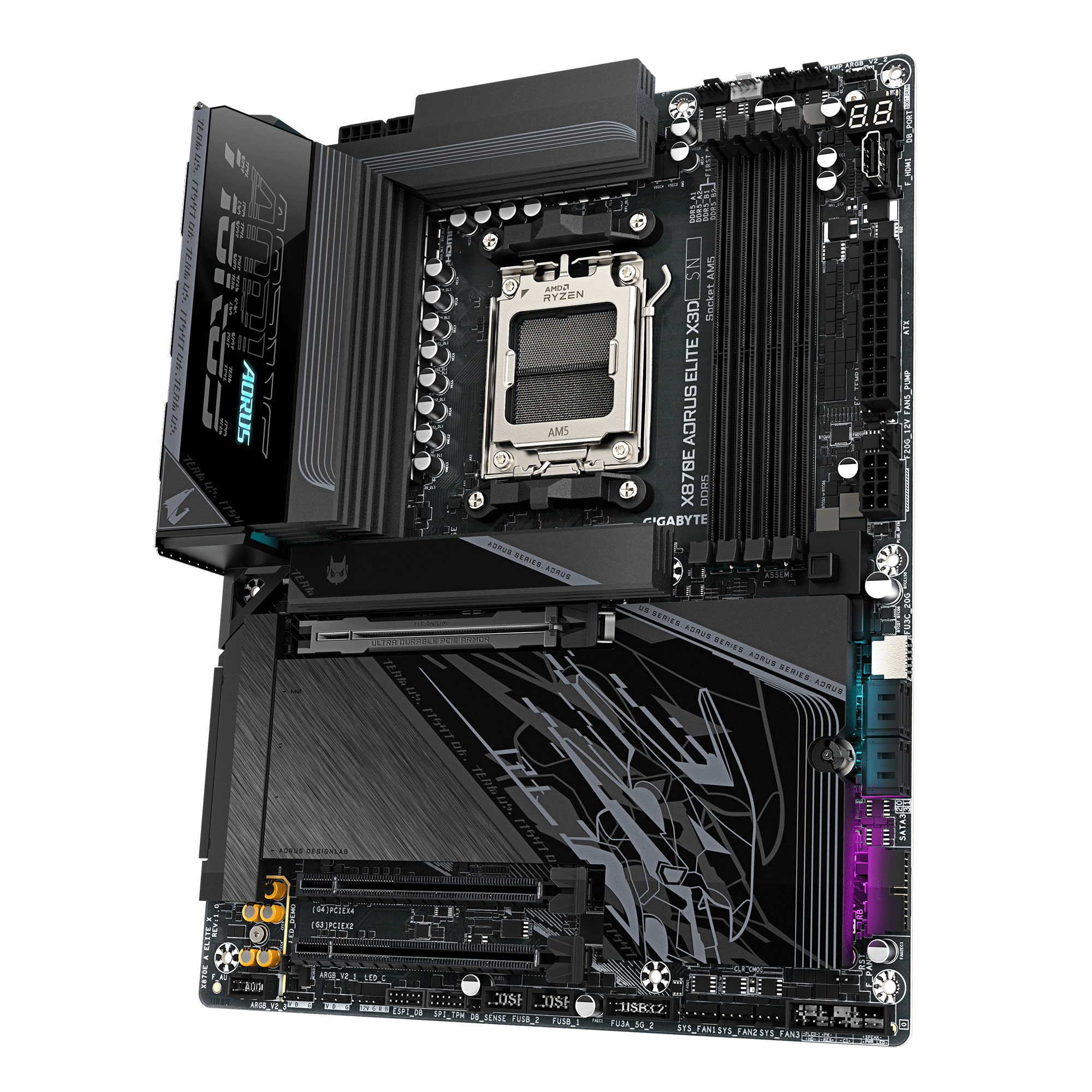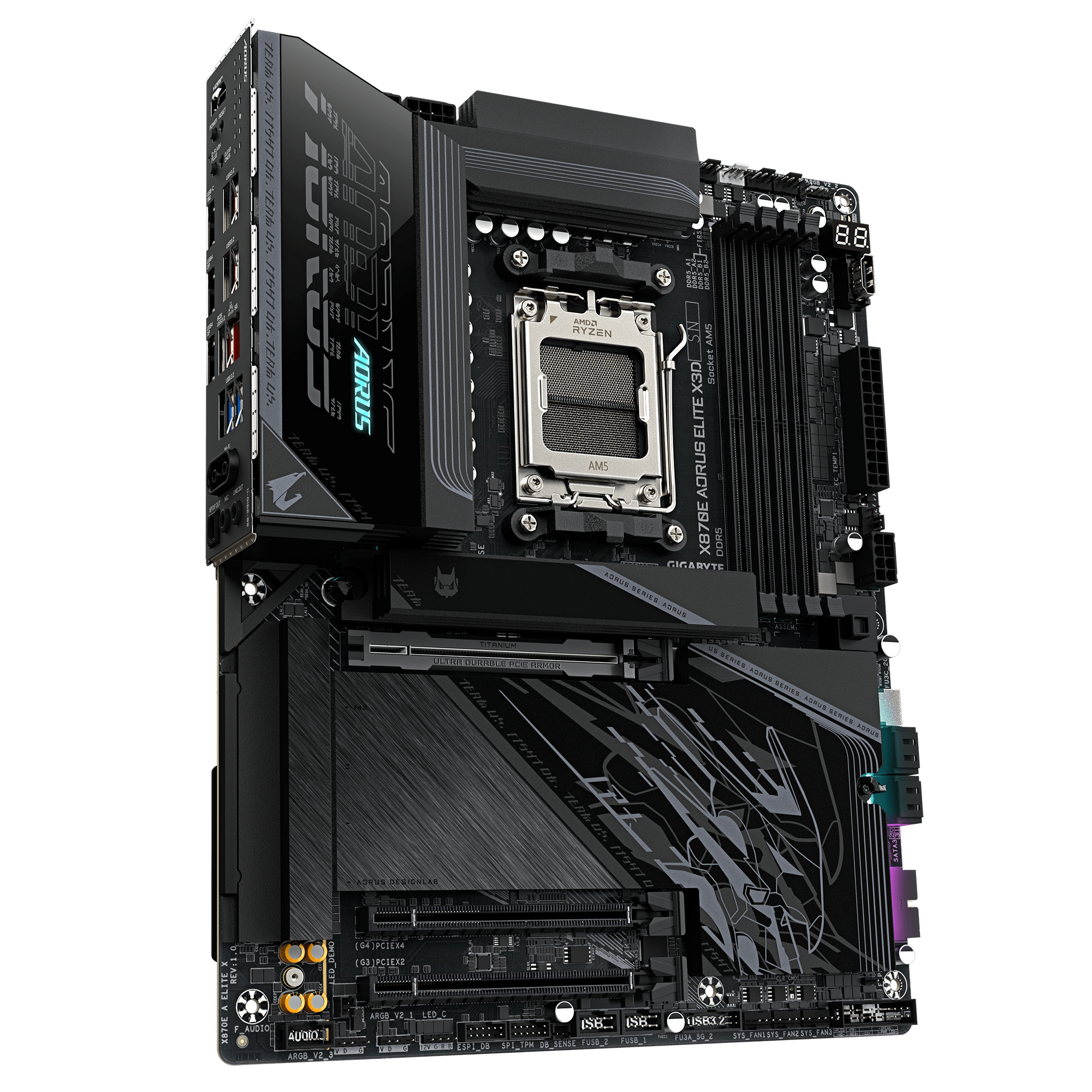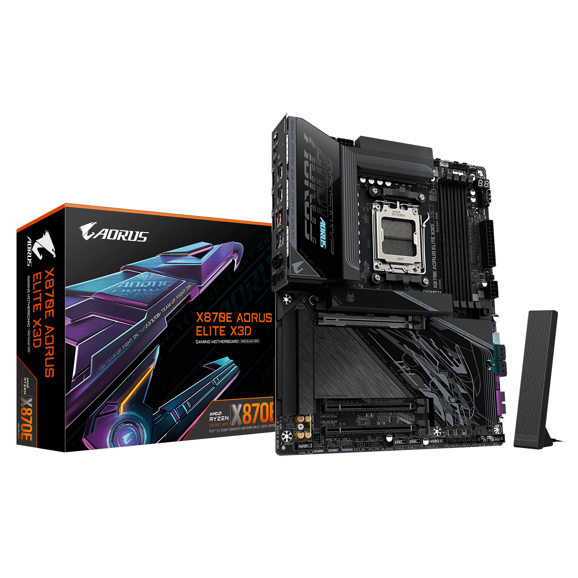 GIGABYTE X870E AORUS ELITE X3D— материнская плата ATX премиального уровня на новом чипсетеAMD X870E, созданная для процессоров Ryzen серии9000 / 7000, включая топовыеRyzen X3D, где необходима максимальная стабильность, мощность и производительность.