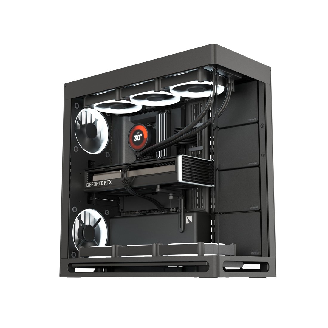 Дополнительный впускной вентилятор в нижней части задней панели направляет холодный воздух непосредственно на вашу видеокарту, идеально балансируя впуск и выпуск. Это обеспечивает пиковую производительность и помогает поддерживать более чистую, свободную от пыли систему.