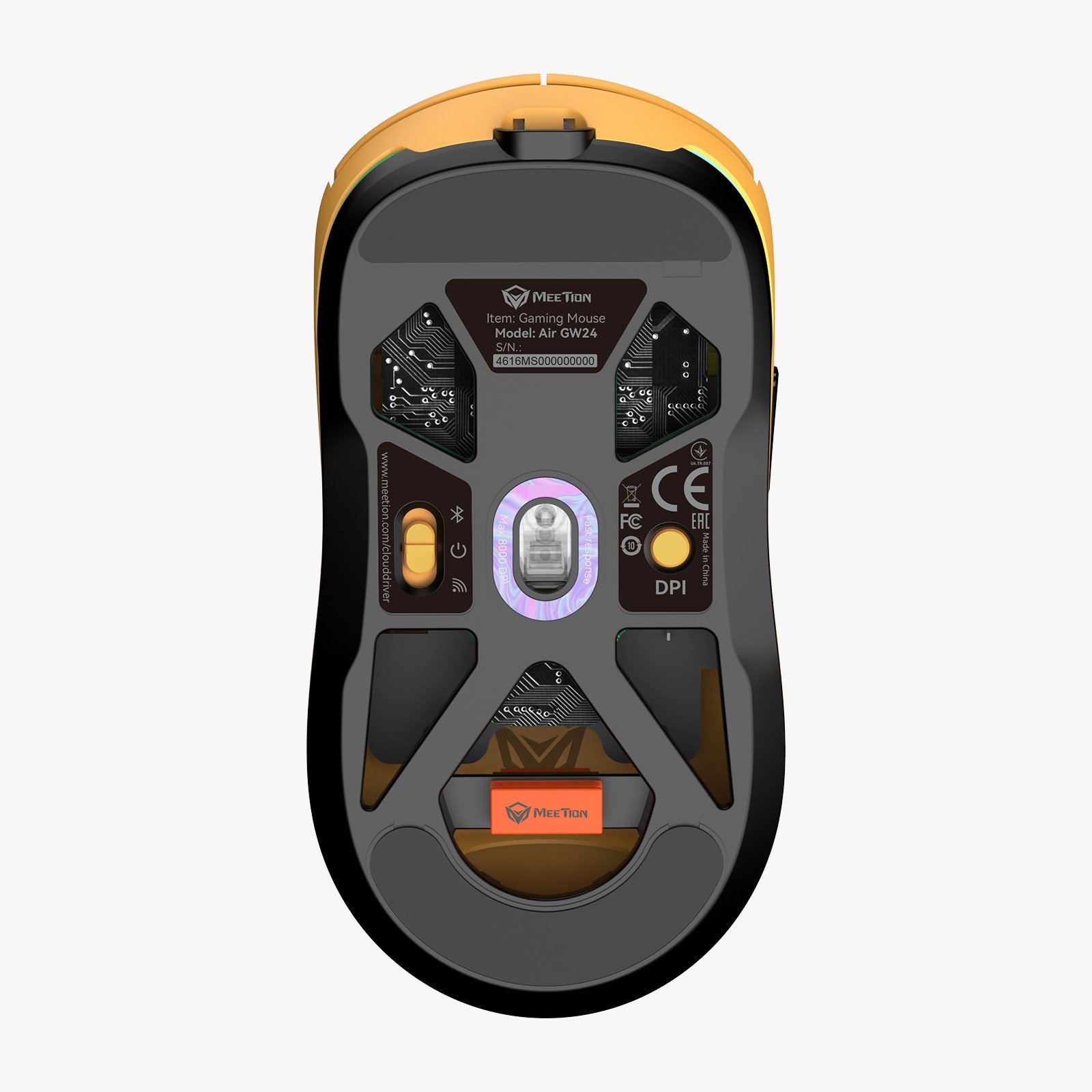 Meetion Air GW24 Lemon Yellow — беспроводная оптическая мышь с разрешением до 8000 DPI, аккумулятором 600 мА·ч и 5 кнопками. Поддерживает подключение по USB-C 2.4 GHz и Bluetooth. Яркий корпус цвета Lemon Yellow, подходит для офисного и корпоративного использования.
