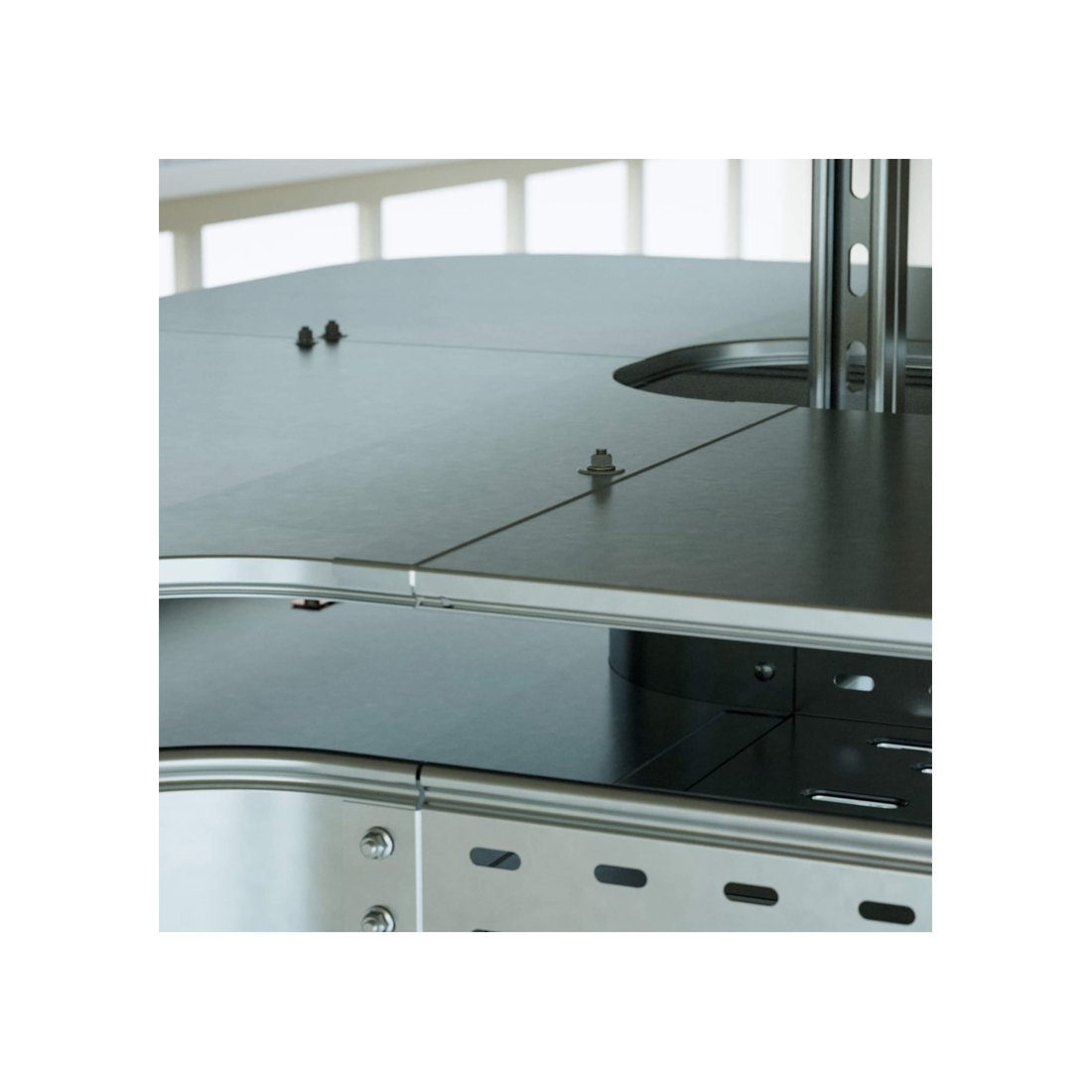 Крышки изготавливаются из листовой стали, покрытой перед формовкой защитным слоем цинка для предотвращения коррозии. Для обеспечения максимальной степени пыле- и влагозащиты IP 44 применяйте также уплотнители, входящие в состав системы. Крышка с заземлением предназначена для перфорированных и неперфорированных листовых лотков шириной 300 мм и длиной 3000 мм. Исполнение: "сталь, оцинкованная по методу Сендзимира".