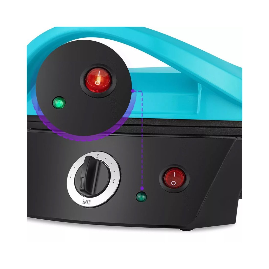 Пиццамейкер оснащён индикатором нагрева, термостатом для регулировки и поддержания температуры панелей. Прорезиненные ножки не дают прибору скользить по столу во время готовки.