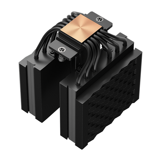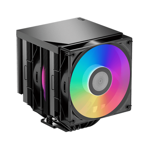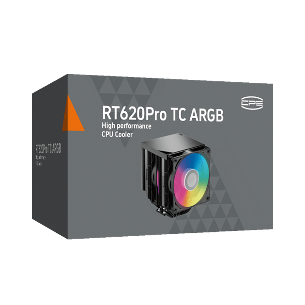 Кулер для процессора PCCooler RT620Pro TC ARGB с башенной конструкцией и двумя вентиляторами типоразмера 120 мм справляется с рассеиванием большой тепловой мощности. Реализована автоматическая регулировка скорости вращения в пределах 500-2200 об/мин и ARGB подсветка крыльчатки.