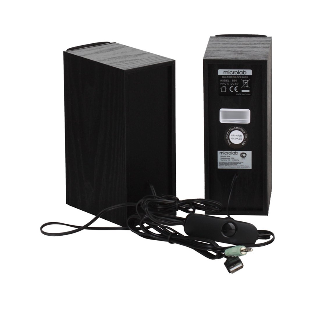 Для воспроизведения высококачественного звука помогут колонки Microlab B56. Комплект из двух колонок является сочетанием классической формы и оптимального небольшого размера закрытого ящика колонки. Ограниченное пространство рабочего места больше не проблема, потому что Microlab B56 можно поместить с лёгкостью куда угодно. Проводной пульт с дистанционным управлением (ПДУ) является плюсом для акустической системы от Microlab. Не нужно вставать, чтобы увеличить громкость или переключить что-либо. В колонках есть и регулировка высоких частот, что расширяет возможности для звука. Подключение и питание происходит через распространённый USB-порт. Фронтальные колонки имеют экранирование у динамиков - это дополнительно защищает выходящий звук от искажений и шума.