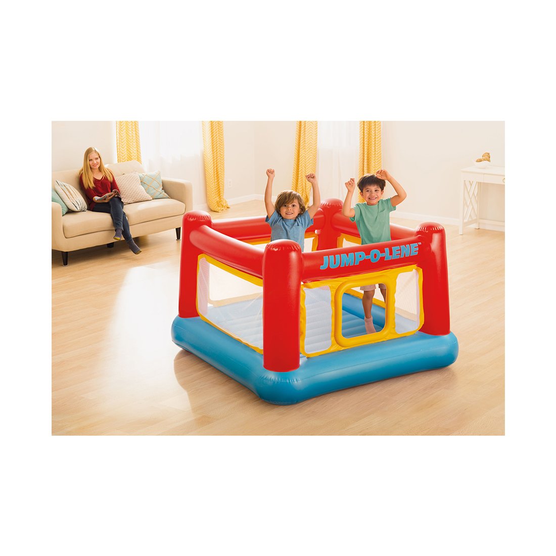 Этот игровой батут от компании Intex станет отличным подарком для вашего ребенка. У него мягкое надувное дно, удобные высокие стенки с сеткой, благодаря которым можно не опасаться за падения малыша. В таком батуте ребенок весело и активно проведет весь день. Максимальная нагрузка составляет 54 кг, в нем свободно помещается 2 ребенка.