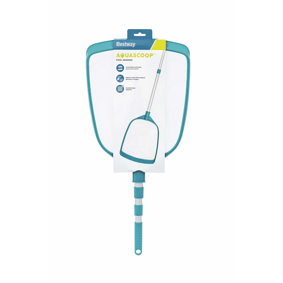 сачок Bestway® AquaScoop™ создан для поддержания чистоты бассейнов. Прочная сетка собирает мусор, листья и грязь на поверхности бассейна, а угловая конструкция позволяет улавливать мусор из всех труднодоступных мест. Сетка самовосстанавливается, если происходит ее прокол. Все, что вам нужно сделать, это потереть порванный участок, и специально разработанная сетка восстановится сама. Легкая, но при этом прочная, складная алюминиевая штанга. Используйте этот сачок для очистки любого бассейна диаметром до 3,96 м (13 футов). Удобный, функциональный и долговечный инструмент для чистки бассейна – это, несомненно, именно AquaScoop.