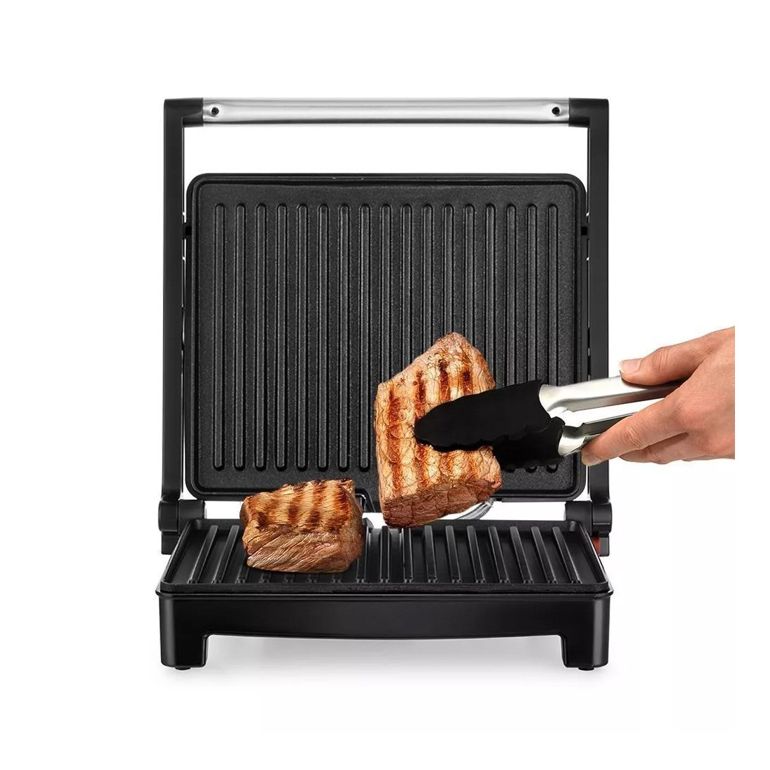 Электрогриль КТ-3603 предназначен для приготовления мяса, рыбы, овощей, сосисок, бутербродов, панини, сэндвичей, тостов и многих других блюд. Ребристая поверхность и высокая температура приготовления способствуют удалению излишков жира из продуктов.