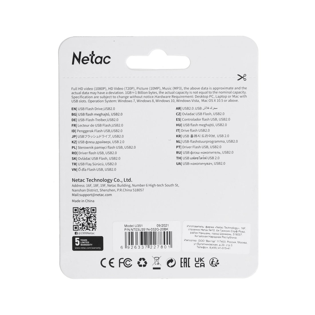Память USB Flash 32 ГБ Netac U351 [NT03U351N-032G-30BK] представляет собой сочетание большой емкости и высокой производительности, которое станет отличным выбором для комфортной работы с фото и видео высокого разрешения, а также с любыми другими файлами большого размера. Благодаря компактным размерам вы сможете брать накопитель с собой куда угодно, а качественный металла и надежная монолитная конструкция с колпачком обеспечат надежную защиту от механических повреждений.