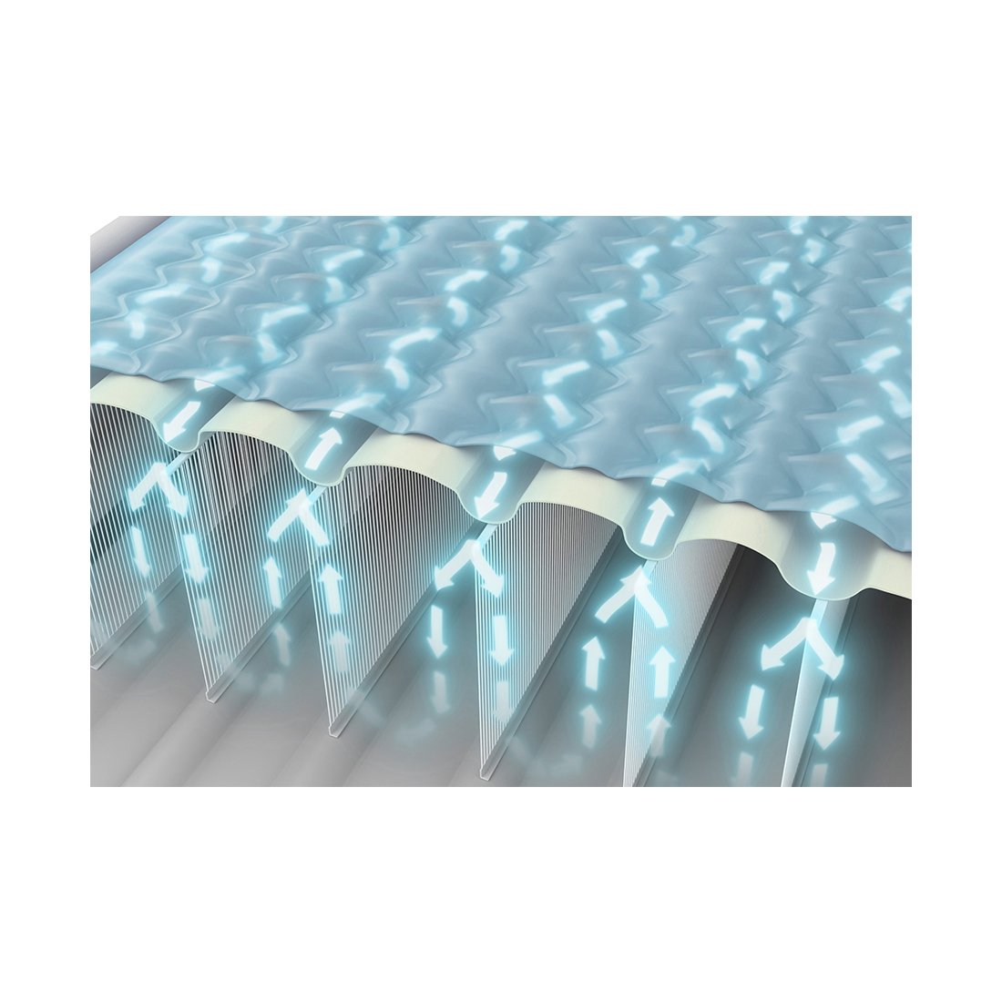 Флокированное покрытие кровати не даёт соскальзывать белью, и в тоже время легко чистится. Встроенный электронасос позволяет быстро надувать и сдувать кровать и дает возможность отрегулировать ее упругость. При отсутствии электричества, кровать можно накачать механическим насосом. Для этого в центре клапана расположено отверстие для подключения механического насоса.