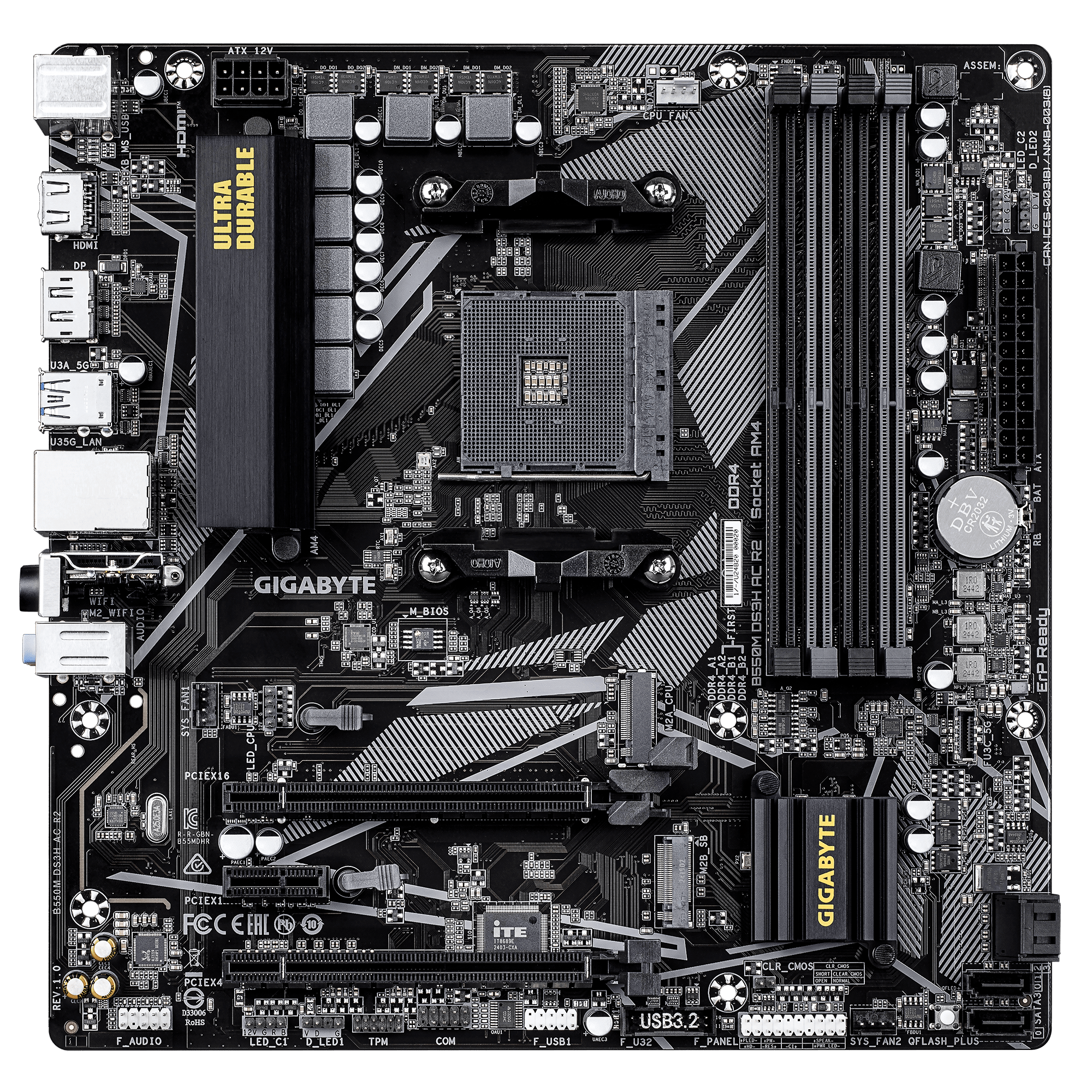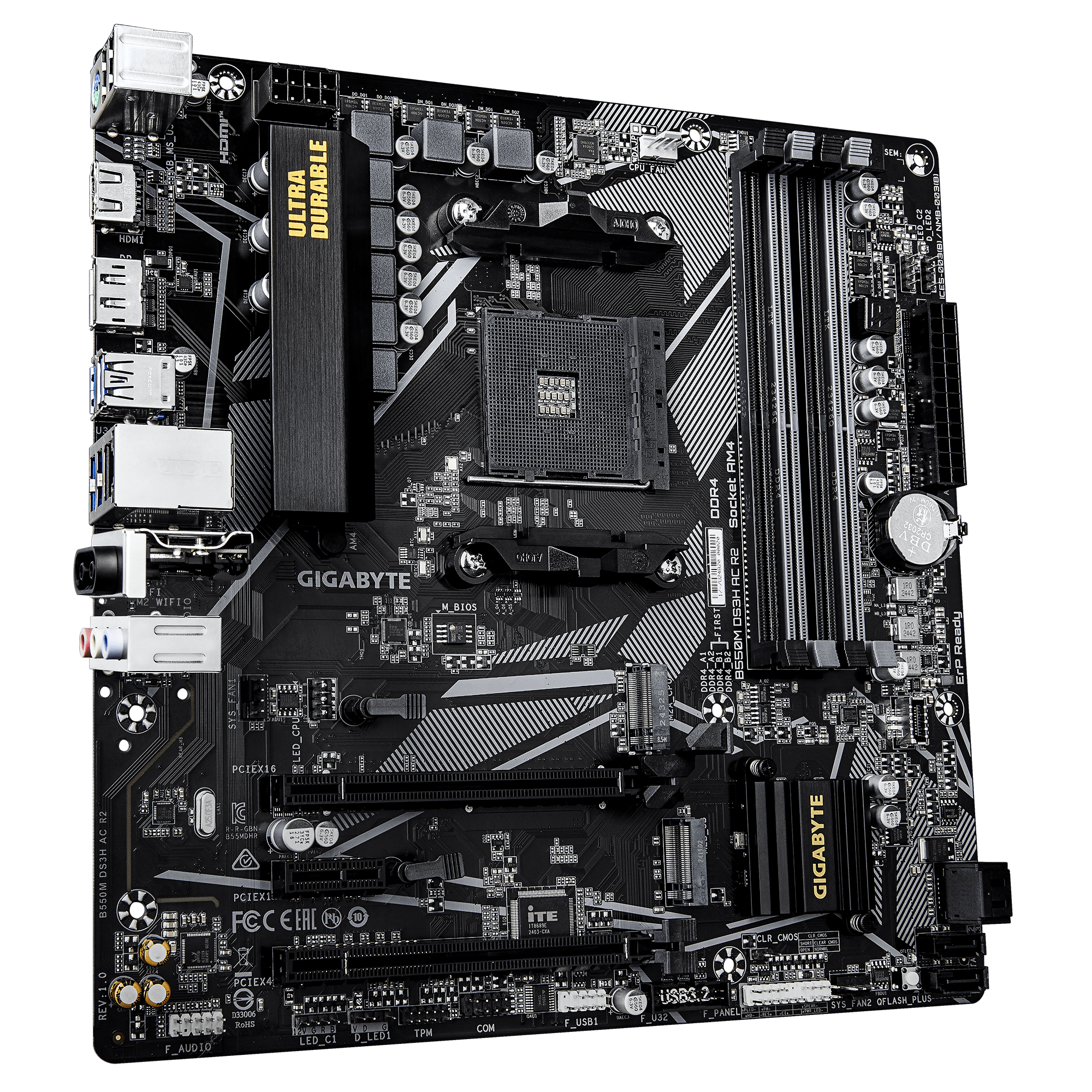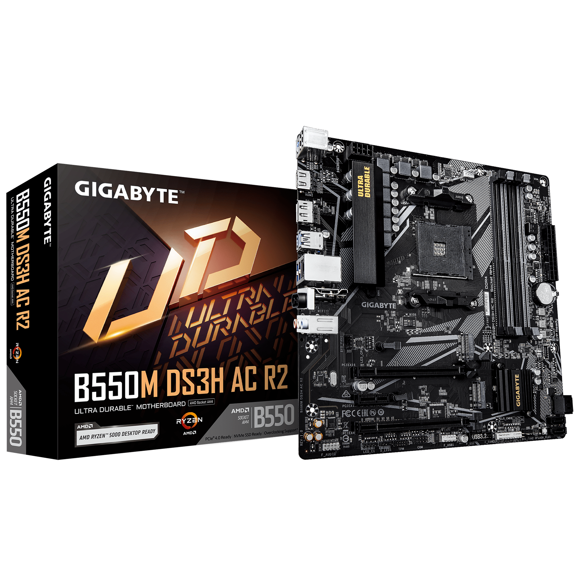 Материнская плата GIGABYTE B550M DS3H AC R2, AM4, 4xDDR4, PCIe4.0, DVI+HDMI, 2xM.2, mATX