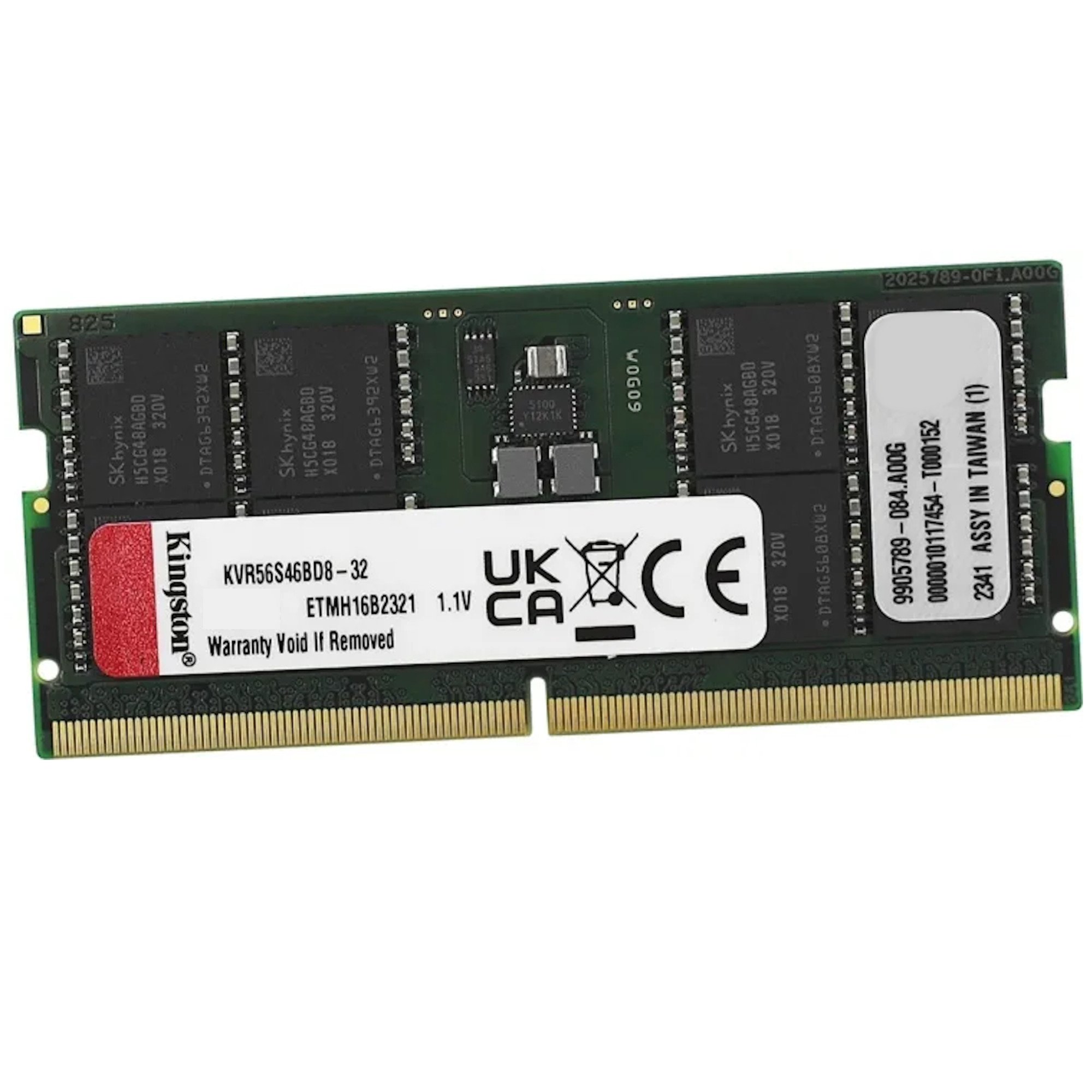 Kingston KVR56S46BD8-32 — модуль оперативной памяти DDR5 SO-DIMM объёмом 32 ГБ с частотой 5600 МГц и таймингами CL46. Обеспечивает стабильную и надёжную работу ноутбуков и компактных систем, подходит для модернизации и ресурсоёмких задач.