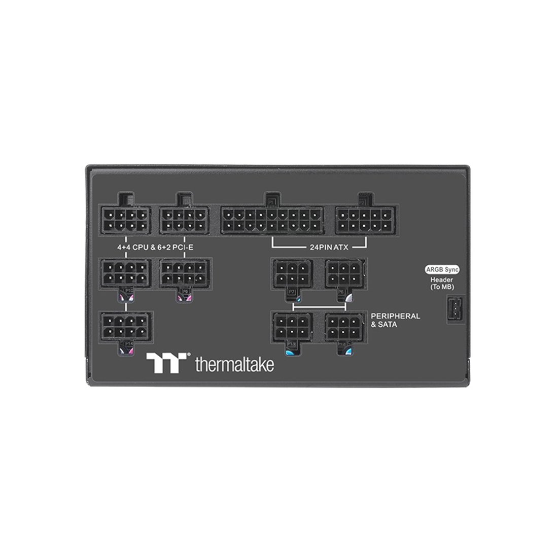 Серия блоков питания Toughpower PF1 ARGB Platinum (850W/1050W/1200W) создана с использованием самых высококачественных компонентов и продвинутых технологических решений для достижения невиданного уровня производительности и надежности. Комплектуются новейшими вентиляторами Riing Duo 14 RGB с 18 адресными светодиодами для реализации динамических световых эффектов различной сложности. Дополнительно, на боковой панели, где указана модель и соответствующая мощность, также имеется подсветка. Управлять всей этой подсветкой можно через программное обеспечение материнских плат производства Asus, Gigabyte, MSI и ASRock имеющими разъем 5V RGB для подключения светодиодных лент на адресных светодиодах.