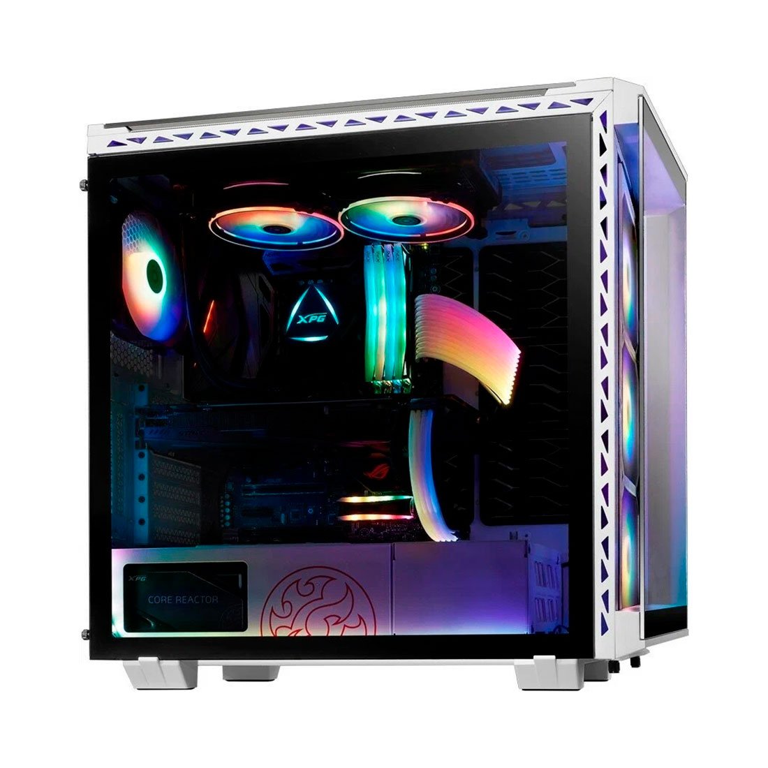 XPG BATTLECRUISER - потрясающе красивый корпус ПК формата "средняя башня" (super mid tower), состоящий из прочного металлического каркаса с четырьмя боковыми панелями из закаленного стекла. К принципиально новым улучшениям относятся четыре предустановленных вентилятора ARGB с 13 световыми режимами, включая режим "Синхронизация музыки"*.