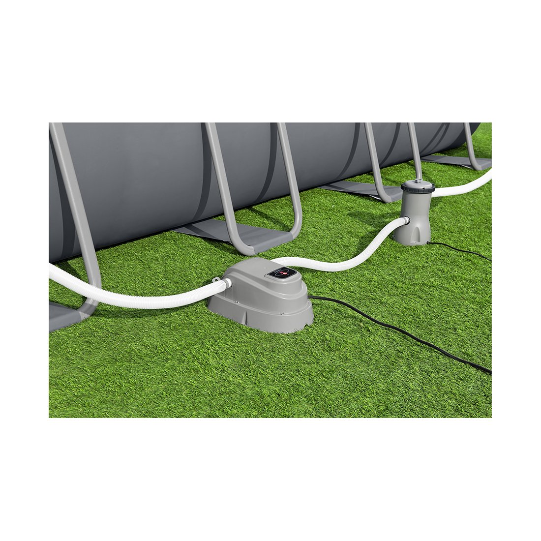 Если на улице пасмурная погода или вы только что наполнили бассейн и хотите окунуться, не дожидаясь, пока солнце нагреет воду в бассейне, тогда специальный нагреватель - это то, что нужно. Подключается к фильтрующему насосу (производительностью до 3785 л/ч). Оборудован автоматом УЗО (защита от поражения током), сенсором уровня воды и термостатом. Мощность 3 кВт, необходима розетка на 15А. Для ускорения процесса нагрева рекомендуется накрыть бассейн покрывалом. Температура воды в бассейне должна быть не ниже 16°C и не более 35°C. Категорически не рекомендуется использовать нагреватель, когда в бассейне находятся люди!