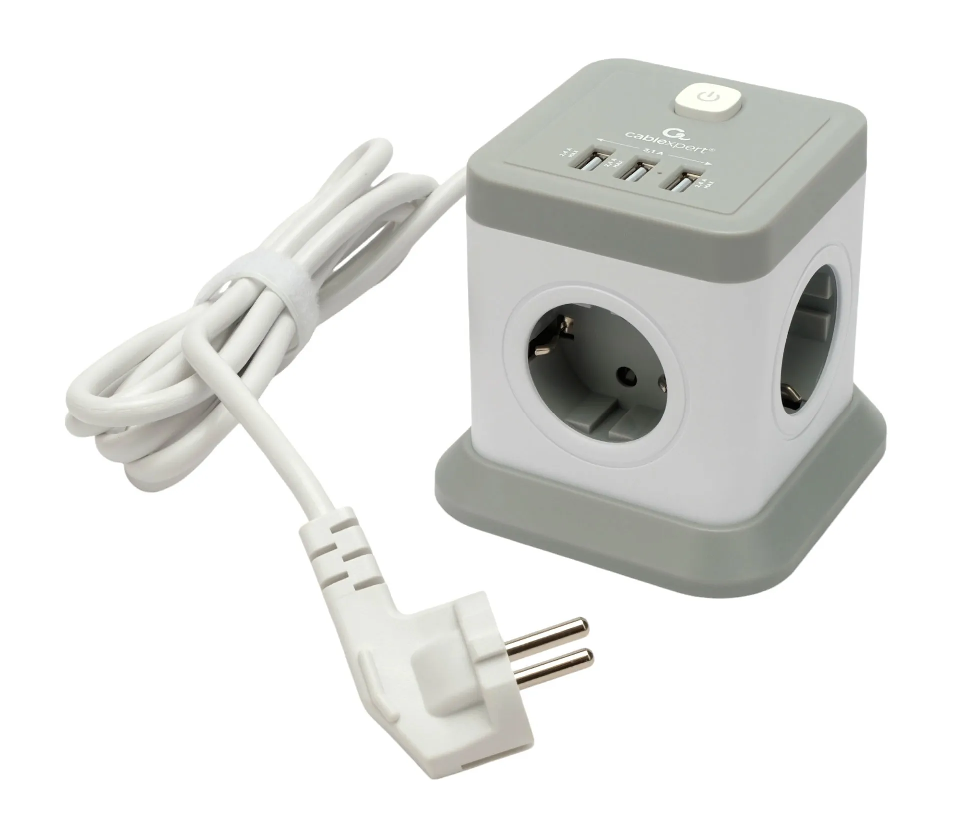 Сетевой фильтр Cablexpert Tower, TWR-4-U3-W-3, 4р, 10А, 3xUSB, 3.1А, 3м, ур.защ. 2+, коробка белый
