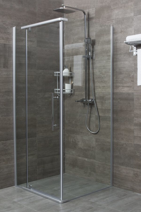 "900*900*2000/6мм стекло, прозрачное металические детали (профиль, ручка, петли) - матовый алюминий/поддон отдельно"