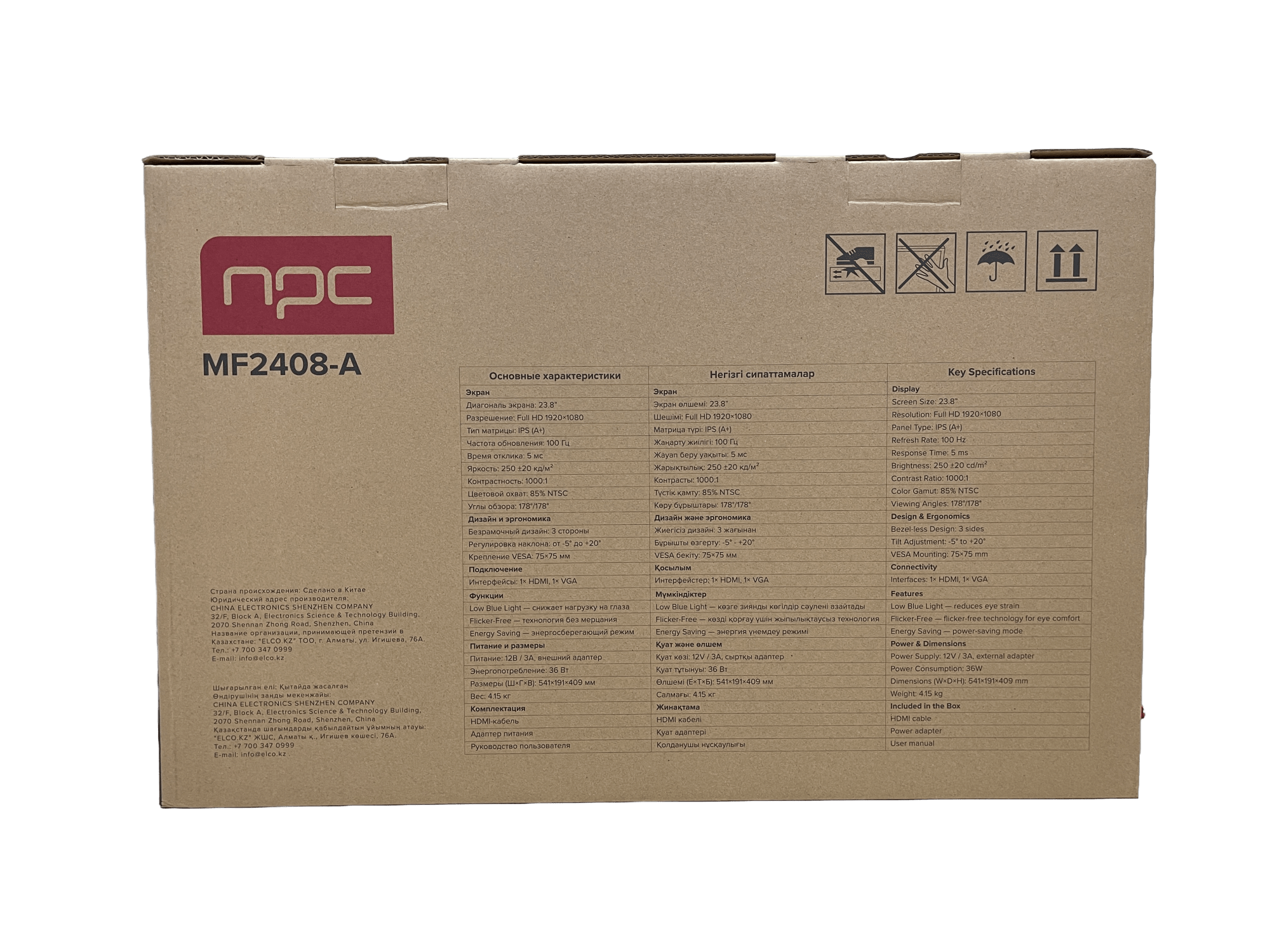 Монитор 27" NPC MF2708-A, 1920x1080 IPS (LED), 100Hz, 5ms, 250 cd/m2, 1000:1, VGA/HDMI, Black