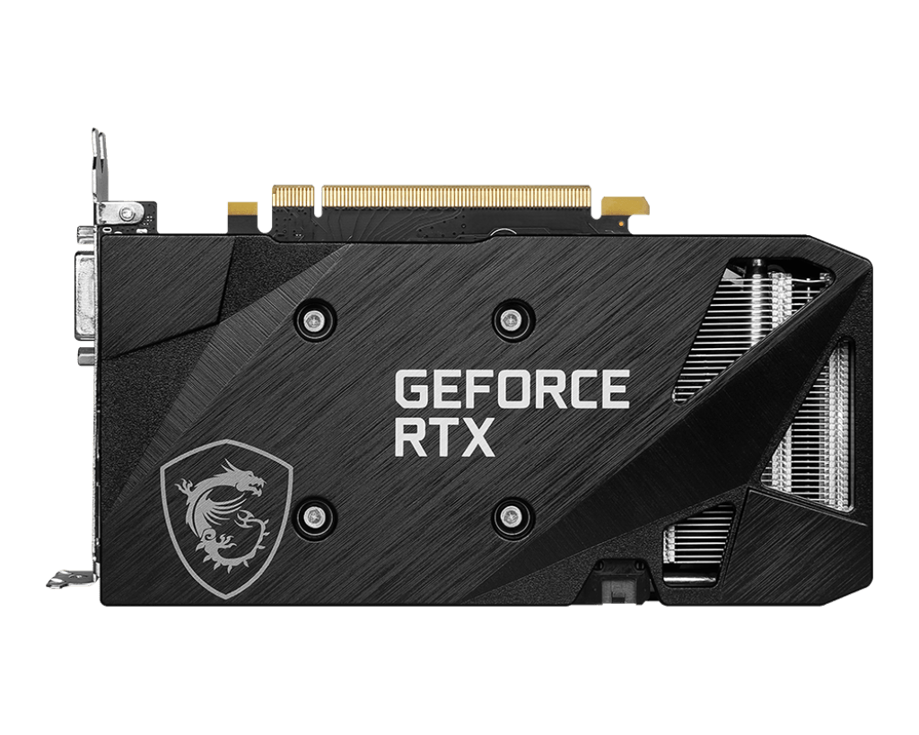 Видеокарта MSI GeForce RTX3050 VENTUS 2X XS 8G OC позволяет усовершенствовать игровую систему. Используя видеочип с микроархитектурой NVIDIA Ampere, этот компонент обеспечивает прирост производительности благодаря памяти GDDR6 объемом 8 ГБ, улучшенным вычислительным блокам. Среди них потоковые мультипроцессоры, тензоные ядра, RT-ядра. Работая на штатной частоте 1552 МГц, видеочип поддерживает разгон до показателя 1807 МГц в режиме турбочастоты. Подключается видеокарта MSI через слот расширения PCI-E 4.0. Система охлаждения предусматривает наличие двух вентиляторов. Благодаря усиленному статическому давлению вентиляторы повышают эффективность охлаждения. Для защиты обратной стороны видеокарты используется прочная шлифованная пластина. Видеоразъемы 1 х DVI-D, 1 x HDMI, 1 x DisplayPort обеспечивают подключение видеокарты к мониторам.