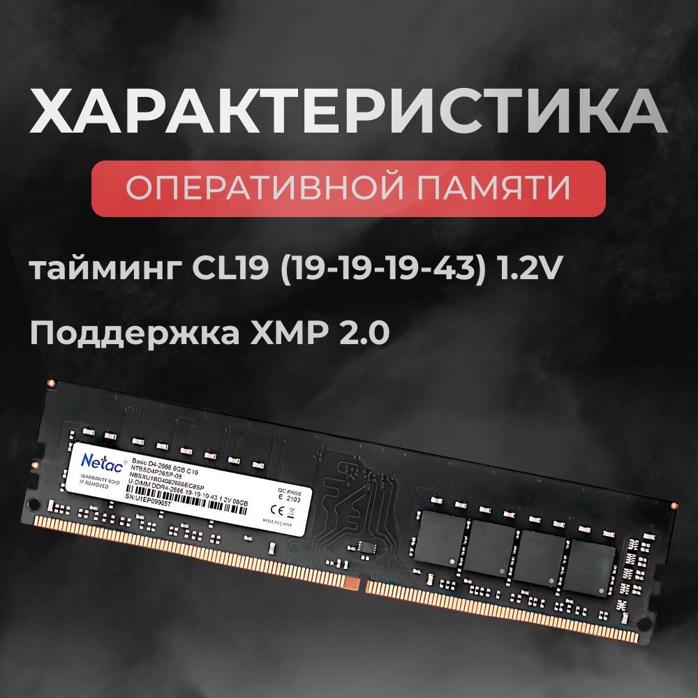 Netac Basic NTBSD4P26SP-08 — модуль оперативной памяти DDR4 DIMM объёмом 8 ГБ с частотой 2666 МГц и таймингами C19. Обеспечивает стабильную работу настольных ПК, рабочих станций и компактных систем. Отличный выбор для модернизации или расширения памяти для повседневных задач и офисной работы.
