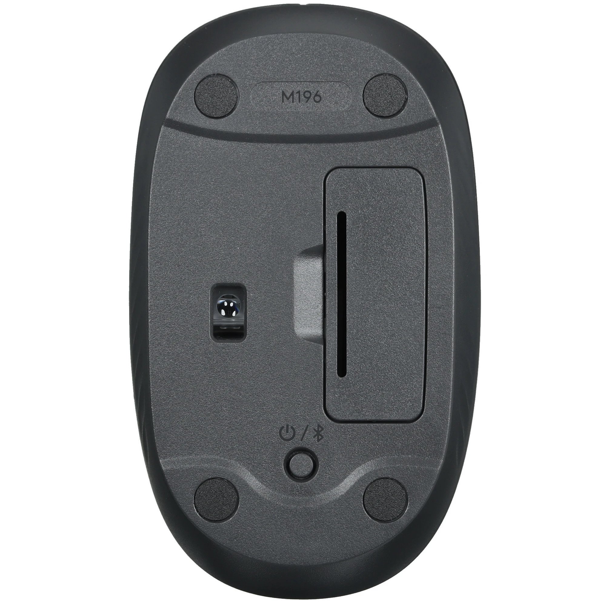 Logitech M196 — простая беспроводная Bluetooth-мышь с оптическим сенсором 1000 DPI, автономностью до 12 месяцев и компактным симметричным корпусом. Подходит для работы, учебы и повседневного использования без USB-ресивера.