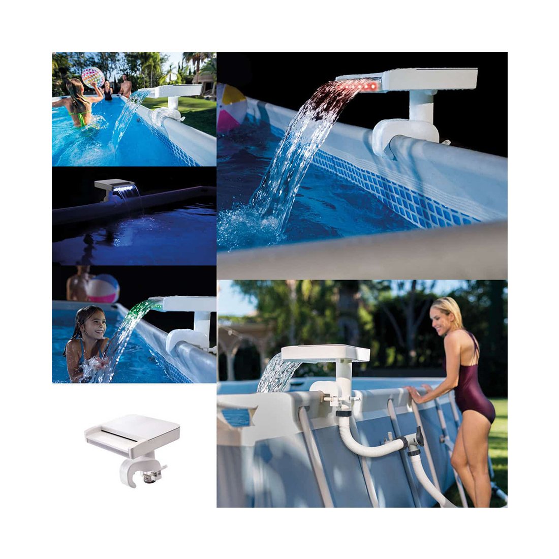 Добавьте немного спокойствия и расслабления в Ваш бассейн с помощью многоцветного водопада. Он поможет расслабиться и придаст чувство уюта во время Вашего отдыха. Водопад для бассейна с цветной подсветкой – это возможность придать водоему в ночное время стильный и оригинальный вид. Устройство работает от встроенного гидрогенератора, который вырабатывает электроэнергию благодаря потоку проходящей через него воды. Для работы необходимо подключение к фильтр-насосу мощностью от 3785 литров в час.