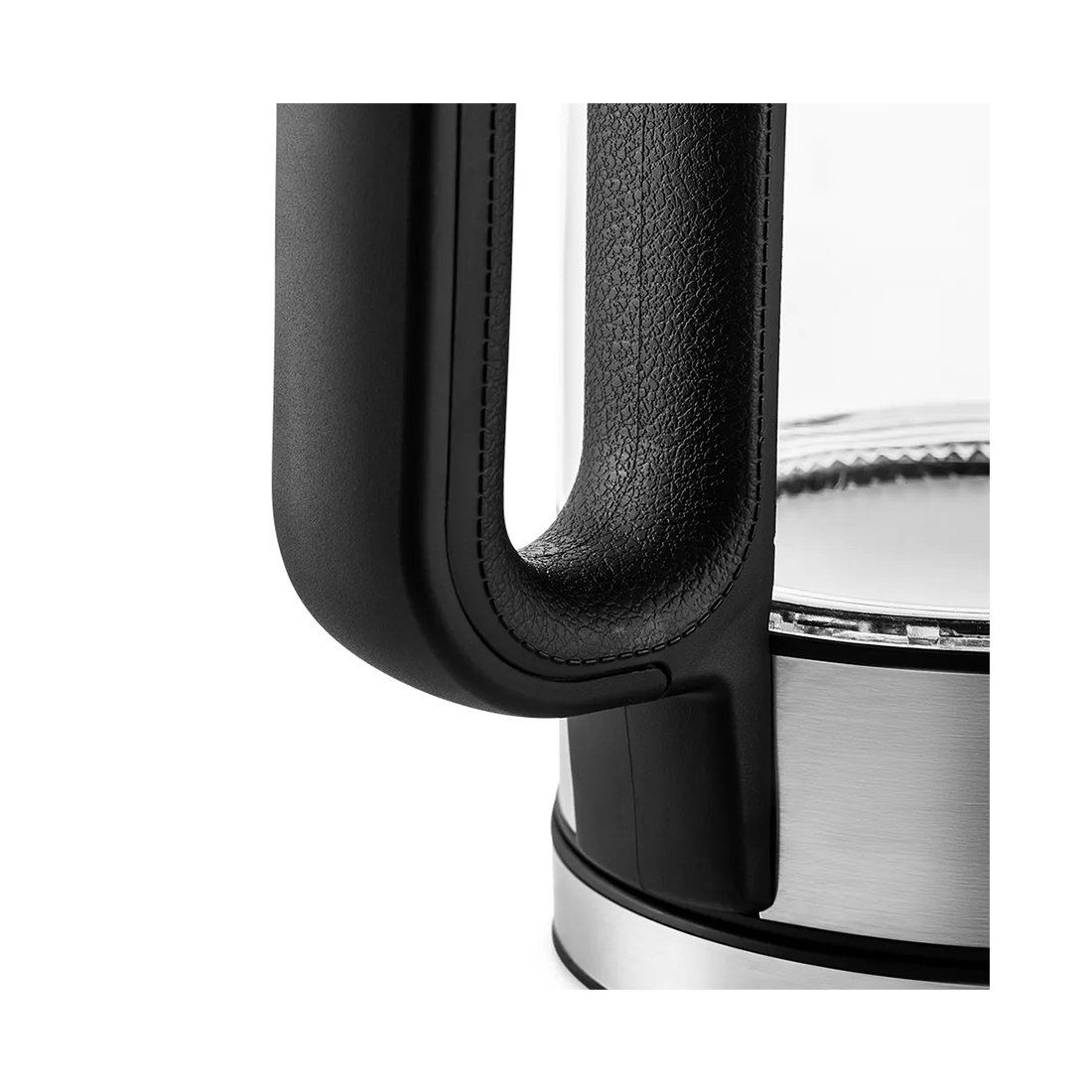 Чайник Kitfort КТ-6128 выполнен из сочетания материалов - стекла, пластика, нержавеющей стали и кожзаменителя. Мерная шкала нанесена на прозрачную часть корпуса. За счёт минималистичного дизайна он идеально впишется в любой интерьер!