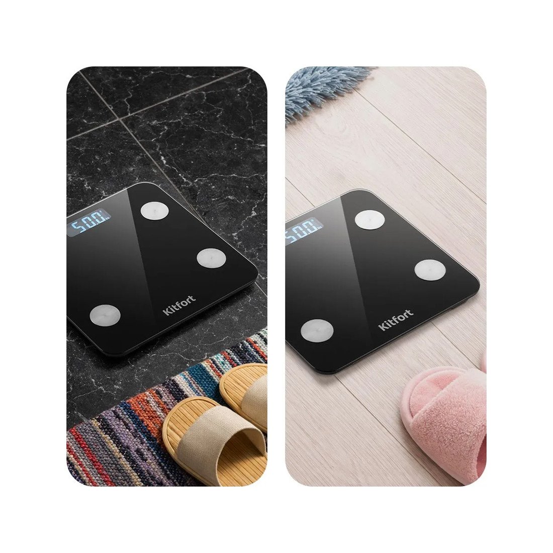 Прорезиненные ножки обеспечивают весам дополнительную устойчивость и предотвращают их скольжение по полу, что гарантирует безопасность во время взвешивания.