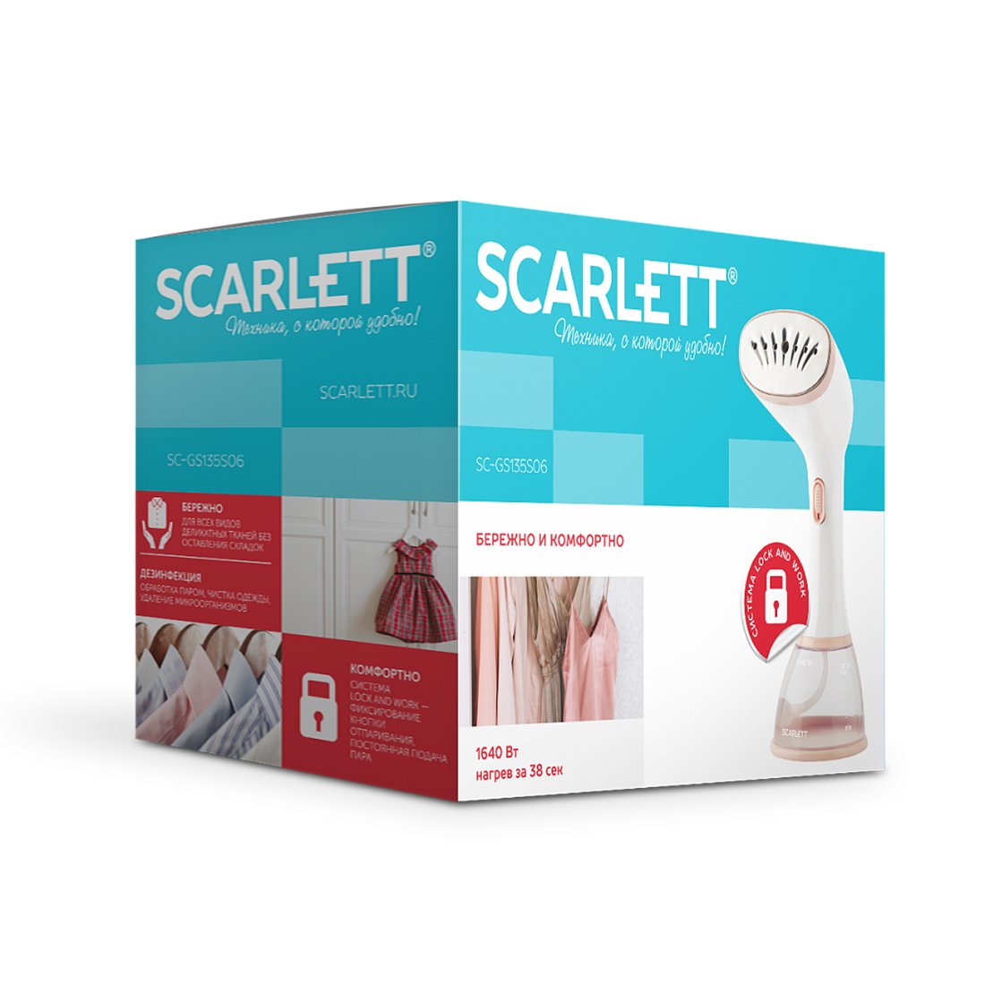 Ручной отпариватель SC-GS135S06 – быстро и эффективно избавит вас от складок, освежит и дезинфицирует одежду прямо на вешалке. Устройство можно использовать для всех видов деликатных тканей. Прибор выдает пар до 25 г/мин. Резервуара объемом 380 мл достаточно для того, чтобы привести в порядок несколько юбок, платьев, брюк и т.п. Благодаря мощности 1640 Вт долго ждать не понадобится – всего 38 секунд, и отпариватель готов к работе! Для более качественной обработки одежды можно использовать насадки, входящие в комплект.
