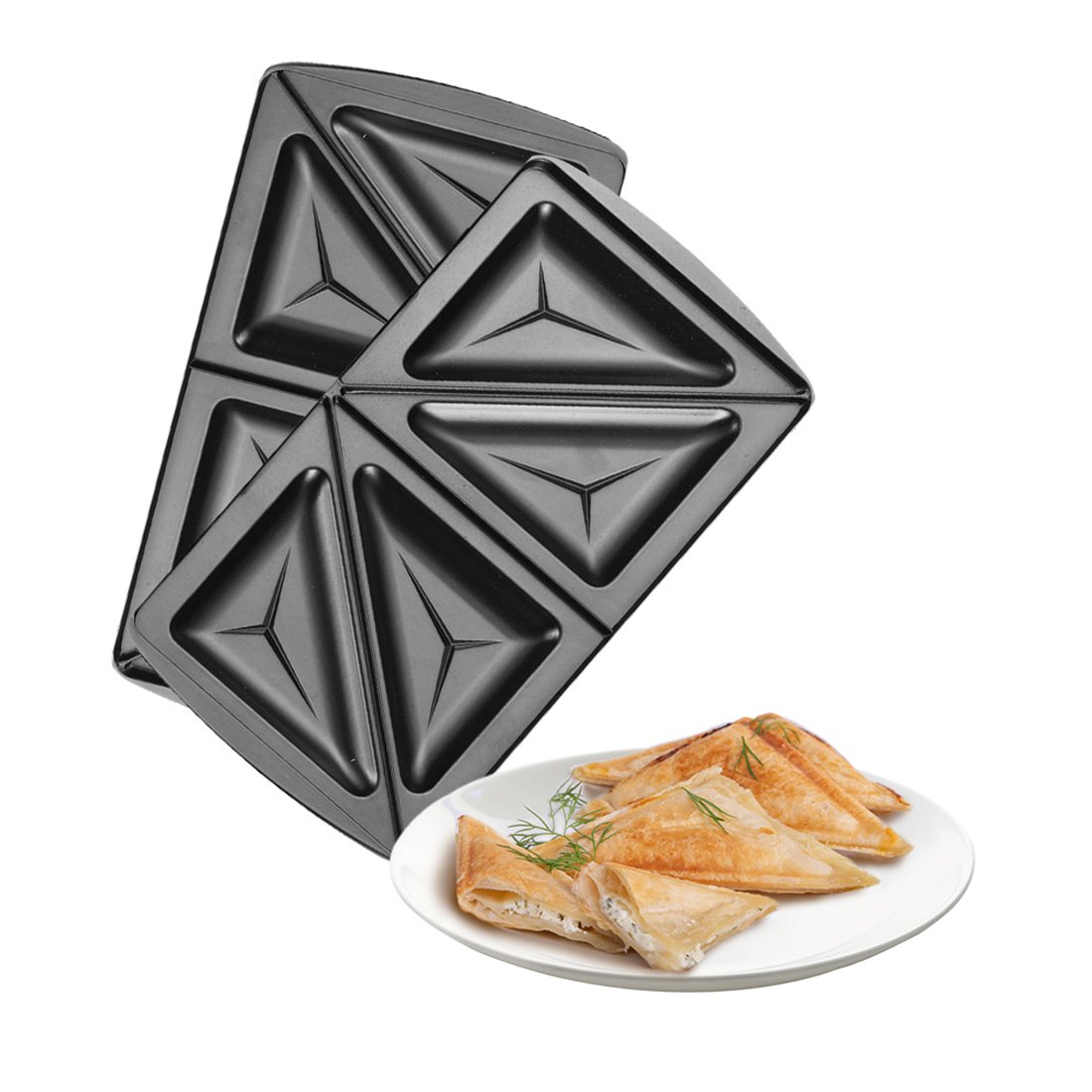 Горячие бутерброды, приготовленные на этих панелях, получаются в виде «запечатанных» треугольников – начинка в таких сэндвичах отлично пропекается и получается отменно сочной. Помимо собственно сэндвичей, на RAMB-01 вы сможете готовить треугольные пирожки из слоеного или дрожжевого теста, печь оладьи, сырники и даже драники!