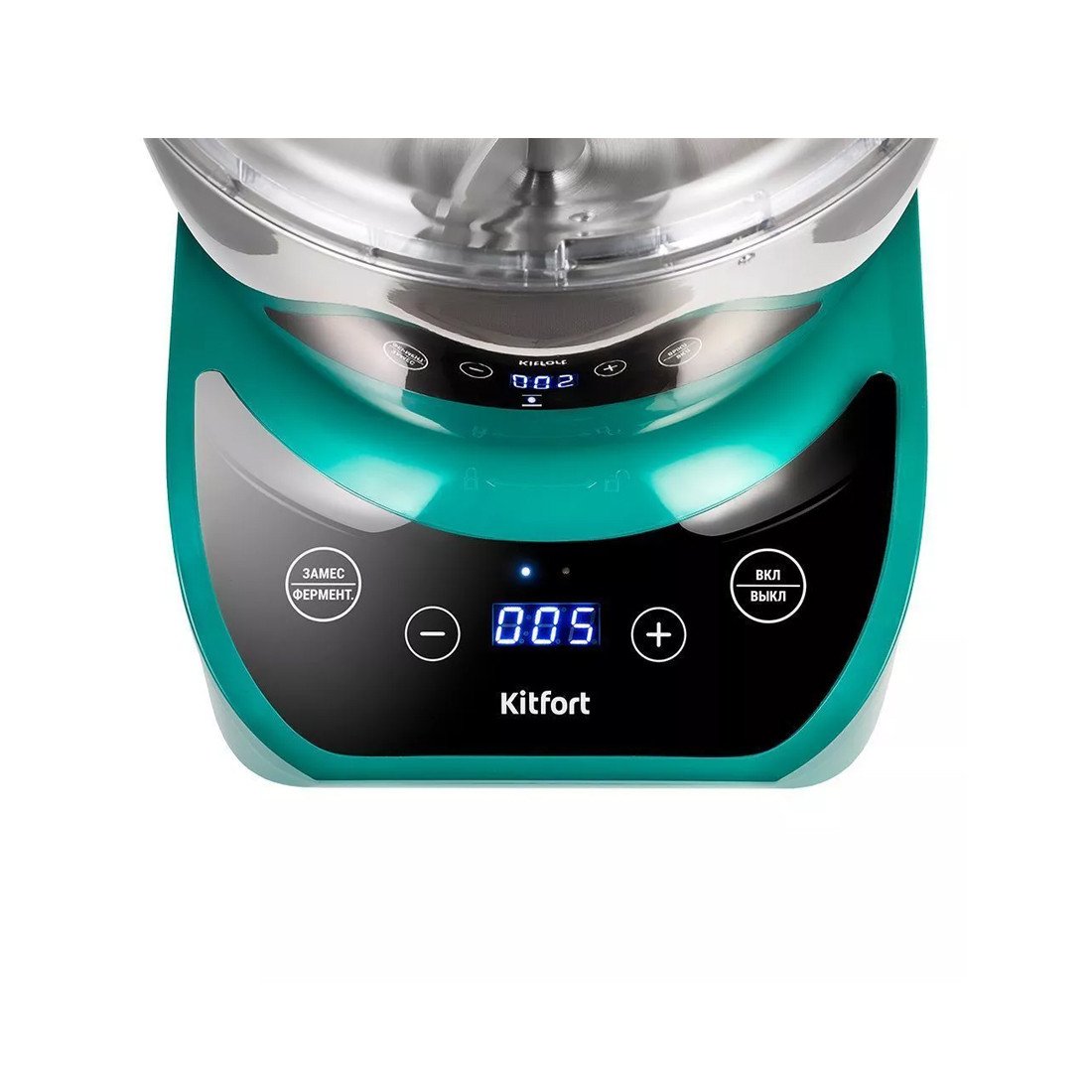 Управление осуществляется с помощью сенсорных кнопок на панели, а на дисплее отображается время работы прибора. Тестомесильная машина может работать в автоматическом режиме. Вам достаточно положить ингредиенты, надеть насадку и установить время замеса.
