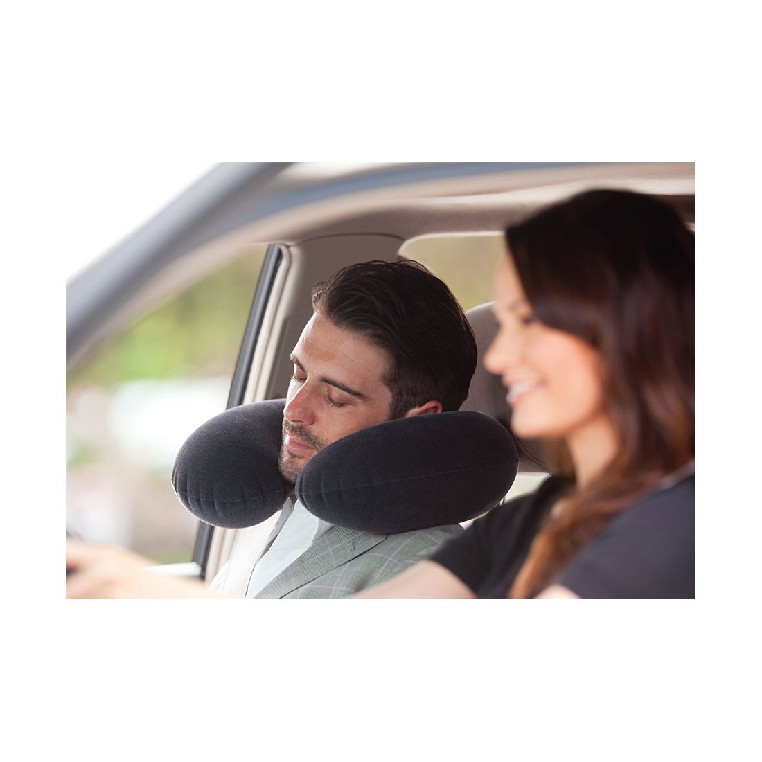 Подушка надувная под шею Travel Pillow 36 х 30 х 10 см, INTEX, 68675, Винил, Флокированная поверхность, Облегающая шею форма, Тёмно-серая, Цветная коробка